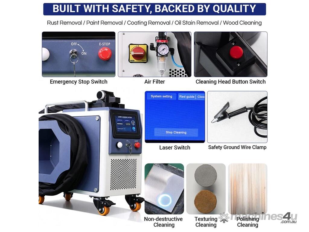 High-energy pulsed fiber laser delivers fast, efficient cleaning with deep contaminant removal and minimal substrate impact.