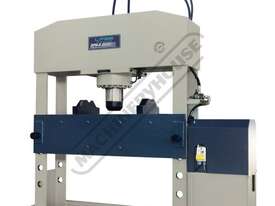 The LFSS DPM-K1570 150 Tonne electric hydraulic press features a sliding cylinder which can be moved from side to side allowing for those offset pressing jobs.