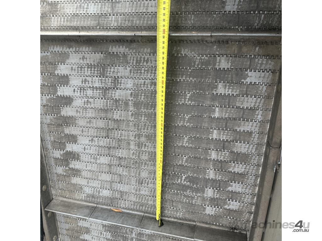 600mm wide belt, 500mm between cleats, 1400mm front to back with 960mm exit height.