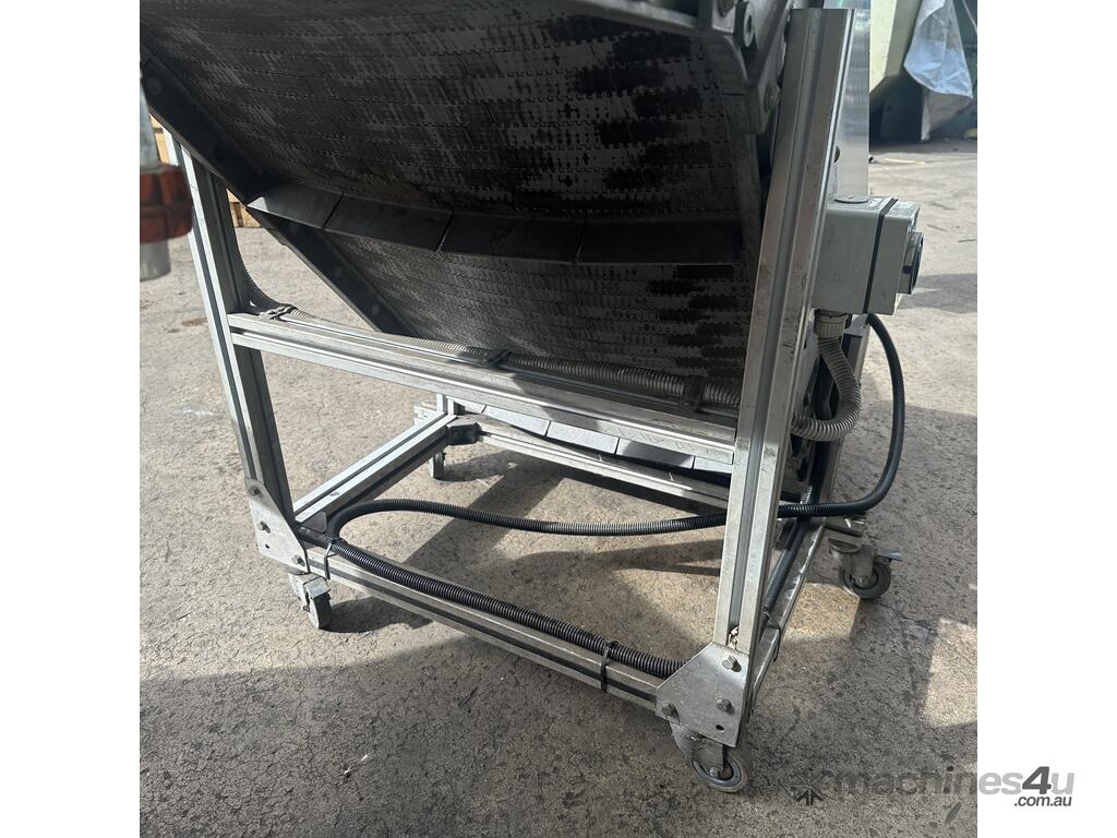 DYNA CON Plastic link cleated belt motorised 960mm exit height elevator conveyor