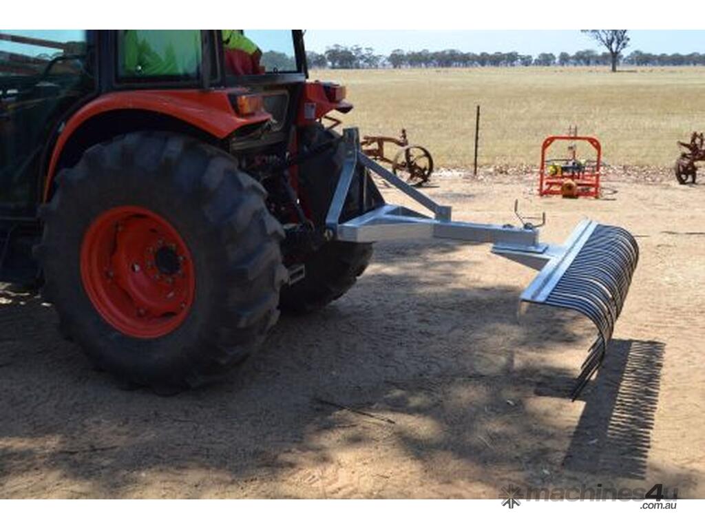 The Daken Stick Rake is a very handy tool for cleaning up sticks and leaves around your property or reducing fire hazards. It easily mounts to a tractors 3 point linkage with a comb that can be angled and spring steel tynes. If it is collecting too much material every second tyne can be removed to allow for smaller objects to clear.