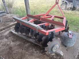 16 disc Daken Ag offsets with seeder box attachment, 3 point linkage with very little use. Buyers please note that the timber plank that holds the seeder box to the unit is currently broken but could be easily replaced.