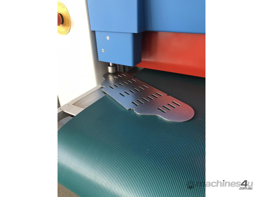 Removal of burrs & splatter produced during laser, waterjet, flame and plasma cutting, or burrs in turret punch produced parts are removed in the first of a two or three step process depending on the model.