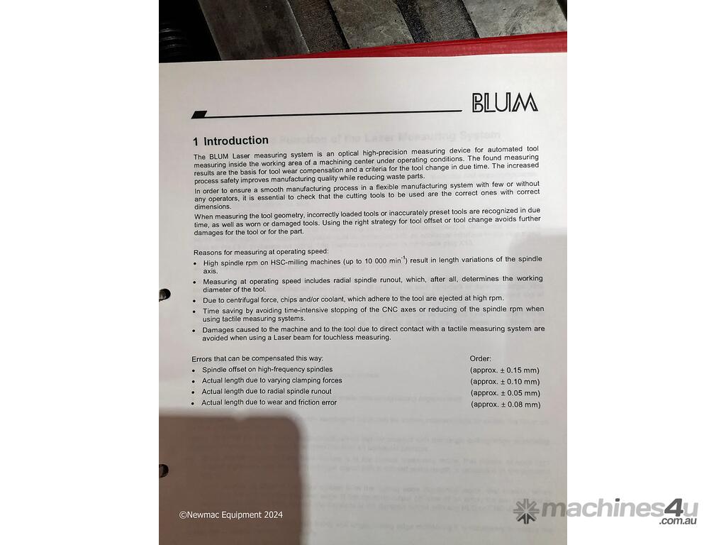 BLUM laser system for tool setting & tool breakage detection. See photo for more info