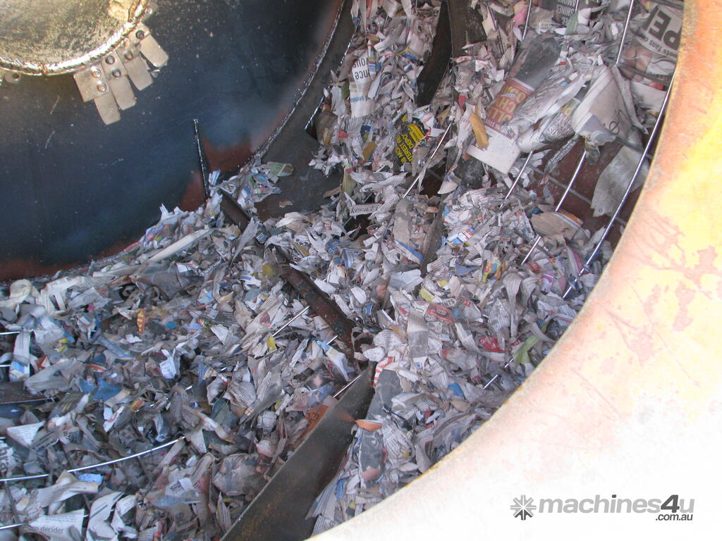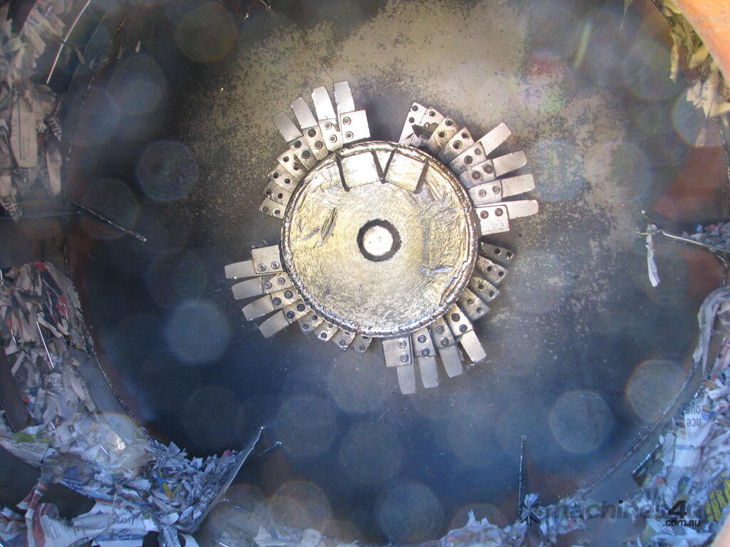 It has a wire cage that tumbles inside the static drum (this part is currently missing a motor). Inside the drum is also a spinning blade that is powered by a large separate motor for shredding/separating.