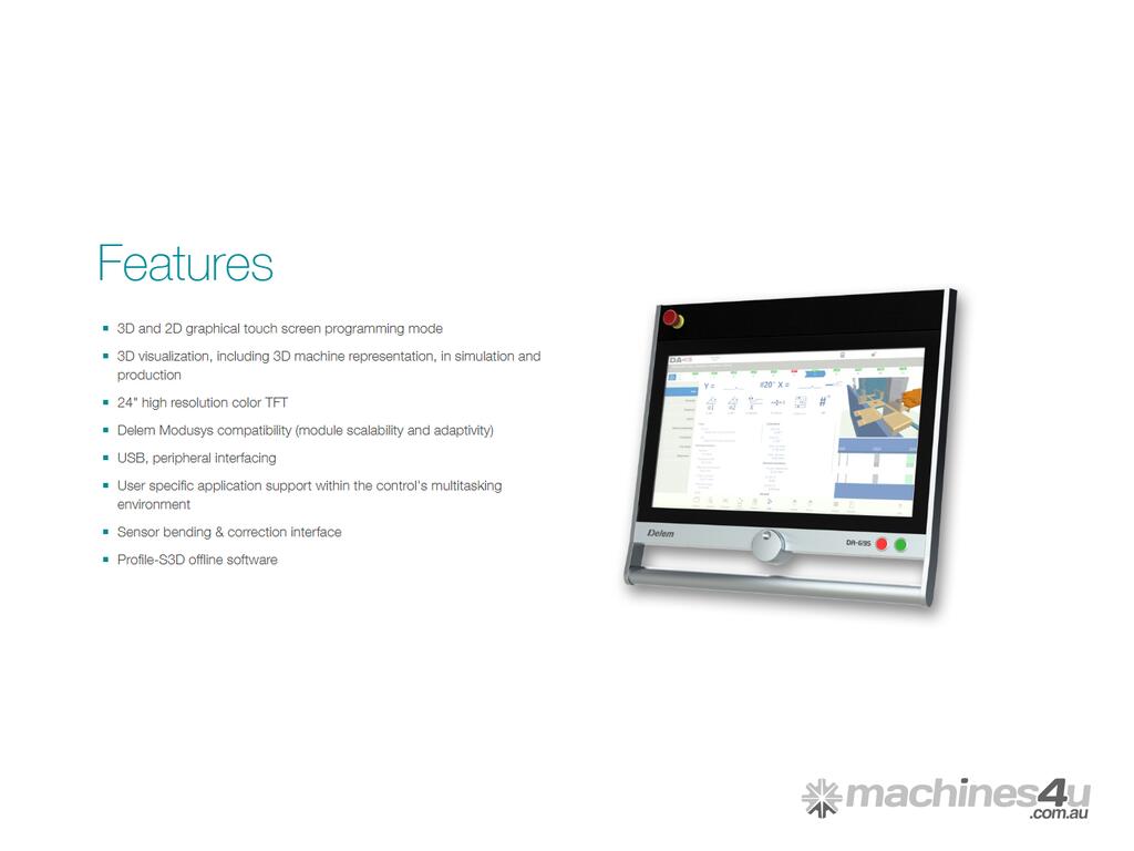 The control operation, based on state-of-the art industrial touch screen technology, gives access to the proven renewed Delem user-interface and enables direct navigation between programming and production. Functions are located where you need them, offering optimized ergonomics throughout the application.