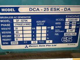 Denyo 20kVA Generator,Denyo DCA-25 ESK-DA 20kVA Generator, 400V, 28.9Amps, 50Hz, 18413 Hours Showing, Serial No: 1066300, Tagged Out, Does Not Start, Visibly Corroded,Serial No: 1066300
