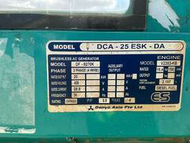 No C/P,Denyo,DCA 25 ESK,Generator,4 Cyl,Diesel,Odometer not visible,8496 (Hrs. Showing on Hour meter),Colour: Green,Unregistered,VIN: 6T9T22V97803C8007,Serial No: 1031597,Sold with No Plates