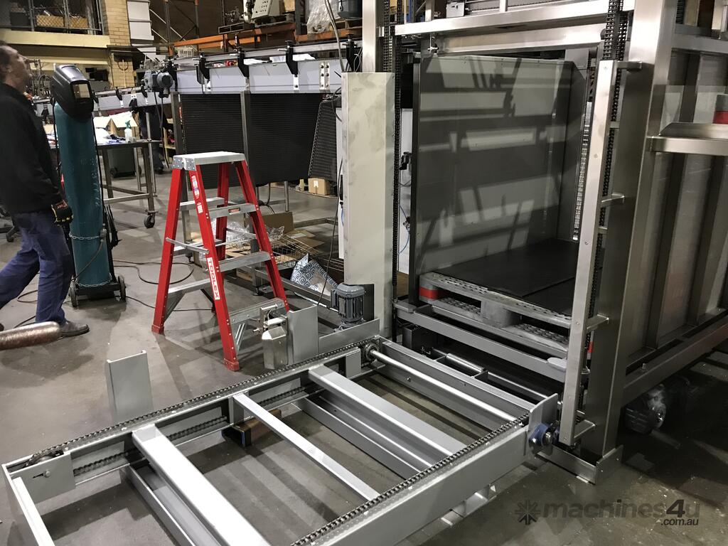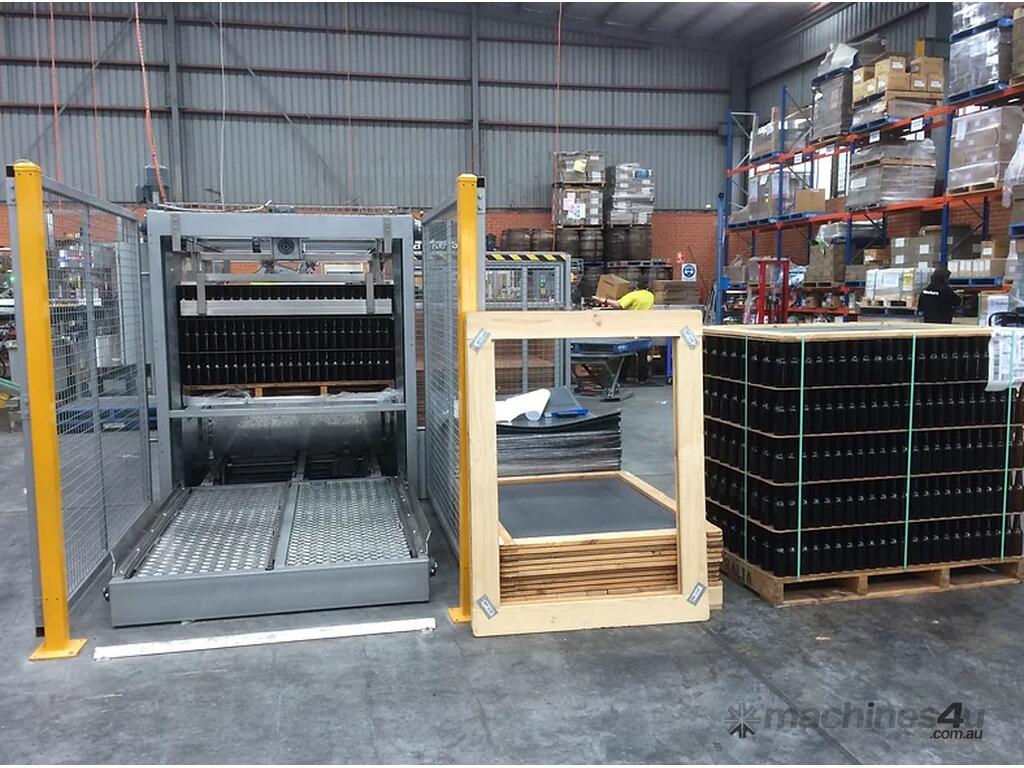 4 point chain lift, auto sweep auto layer board removal optional pallet conveyors, pallet stacker Accumulation table , singliser
