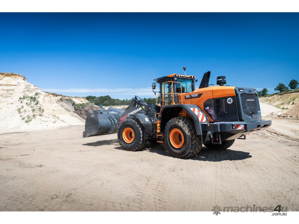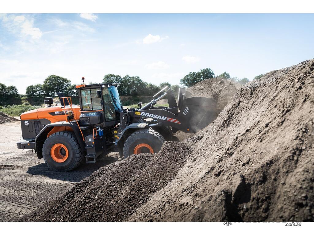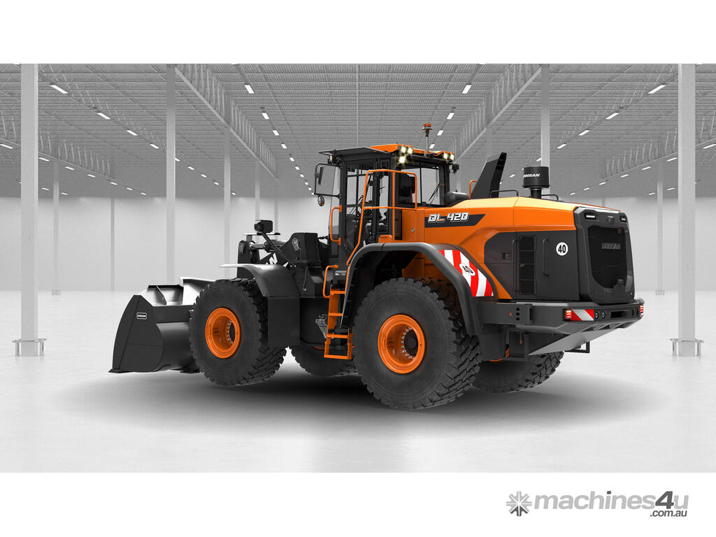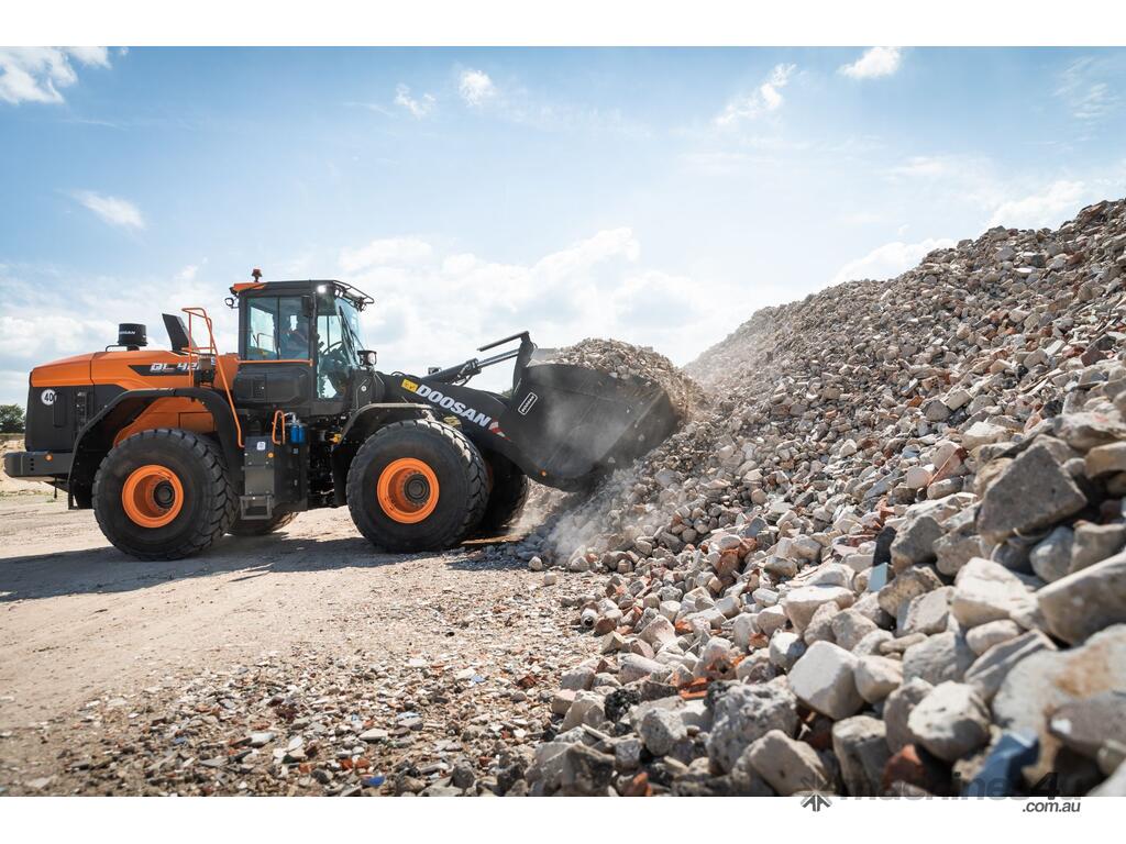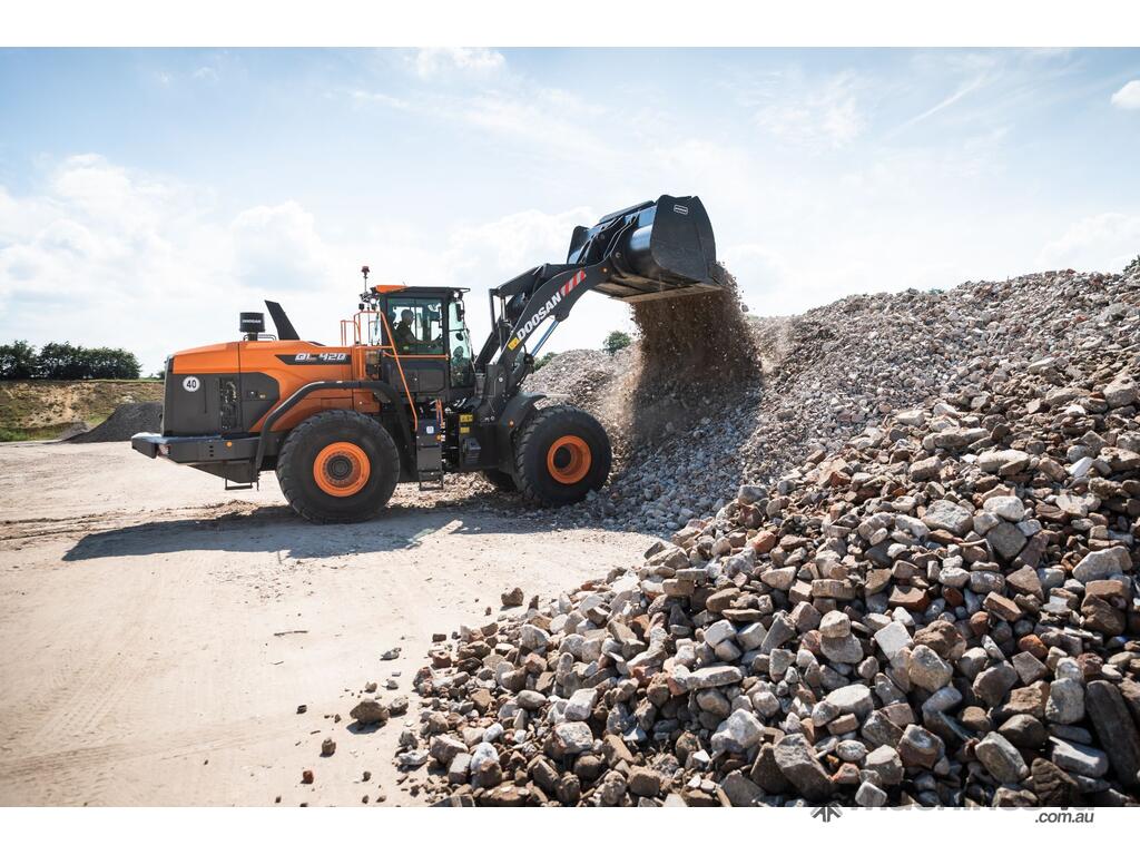 The DL420-7 introduces a fresh look for the Doosan wheel loader range, with a brand new spacious, ergonomic cab and innovative features for higher productivity, increased controllability and operator comfort.