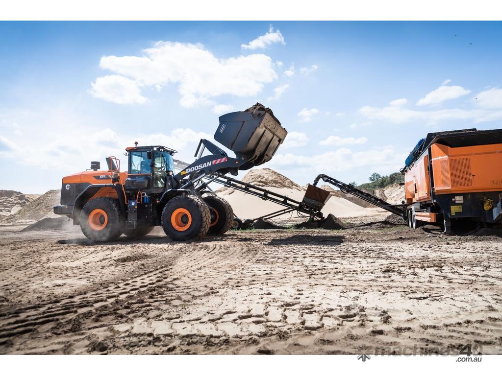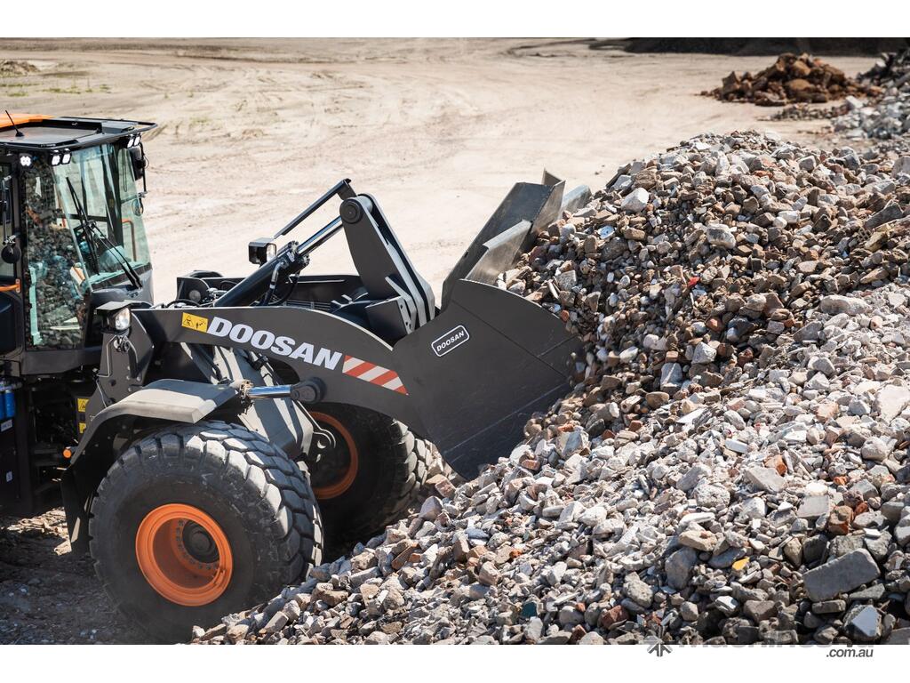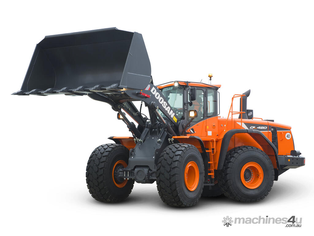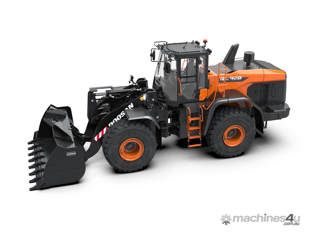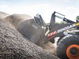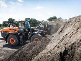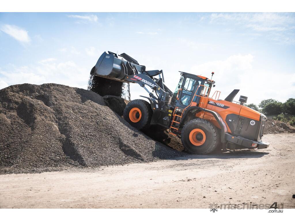 The DL420-7 introduces a fresh look for the Doosan wheel loader range, with a brand new spacious, ergonomic cab and innovative features for higher productivity, increased controllability and operator comfort.