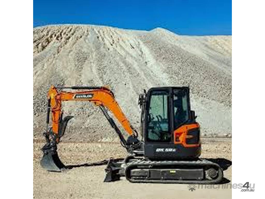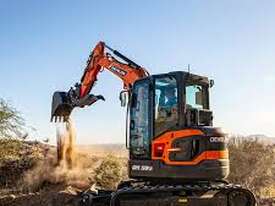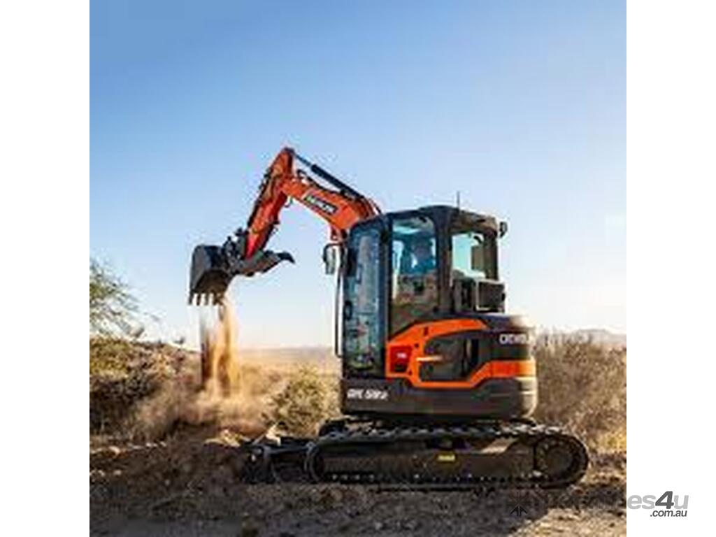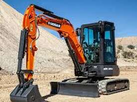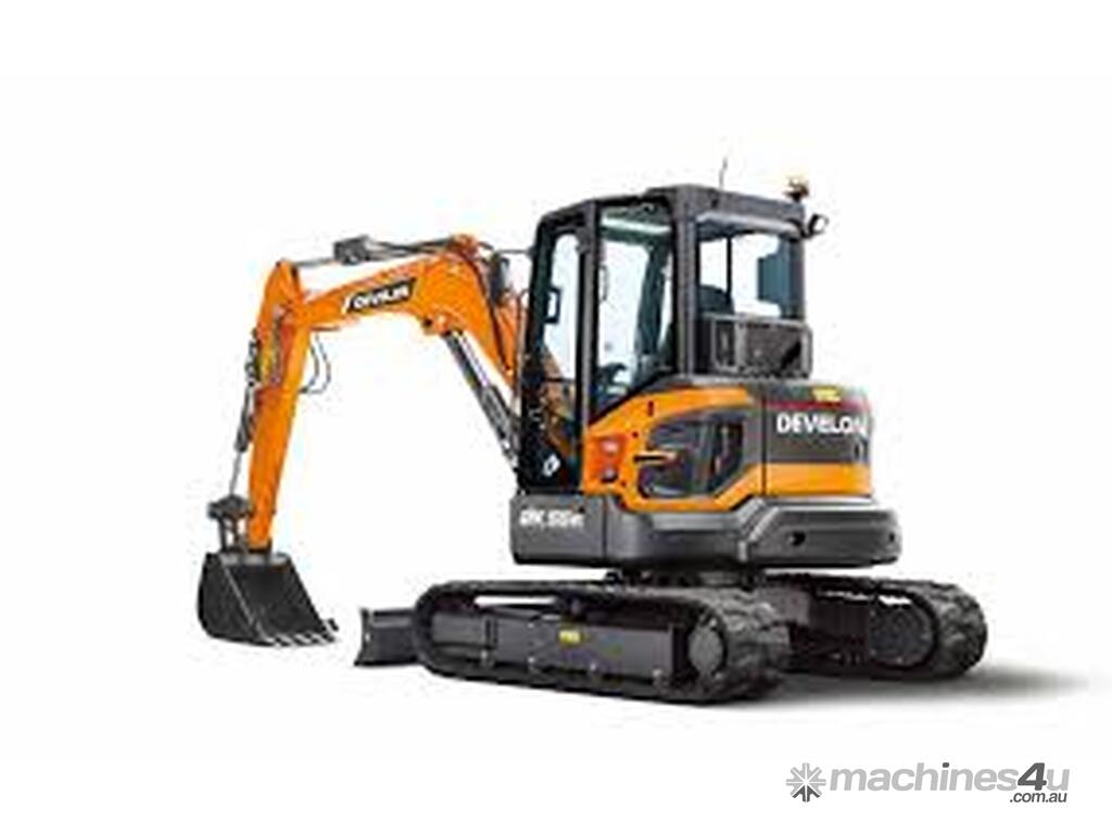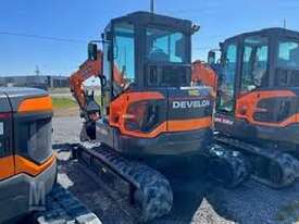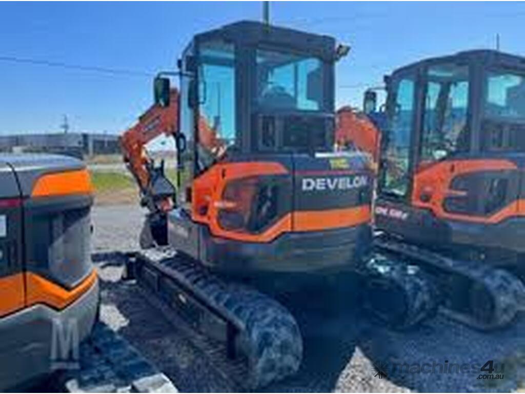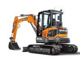 The DEVELON DX50Z Cabin comes with a 300gp 450gp 600gp 1200 Mud Bucket and a Miller Hydraulic Quick Hitch