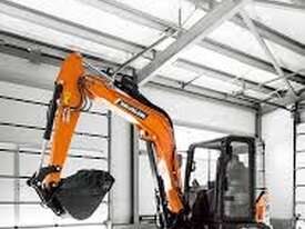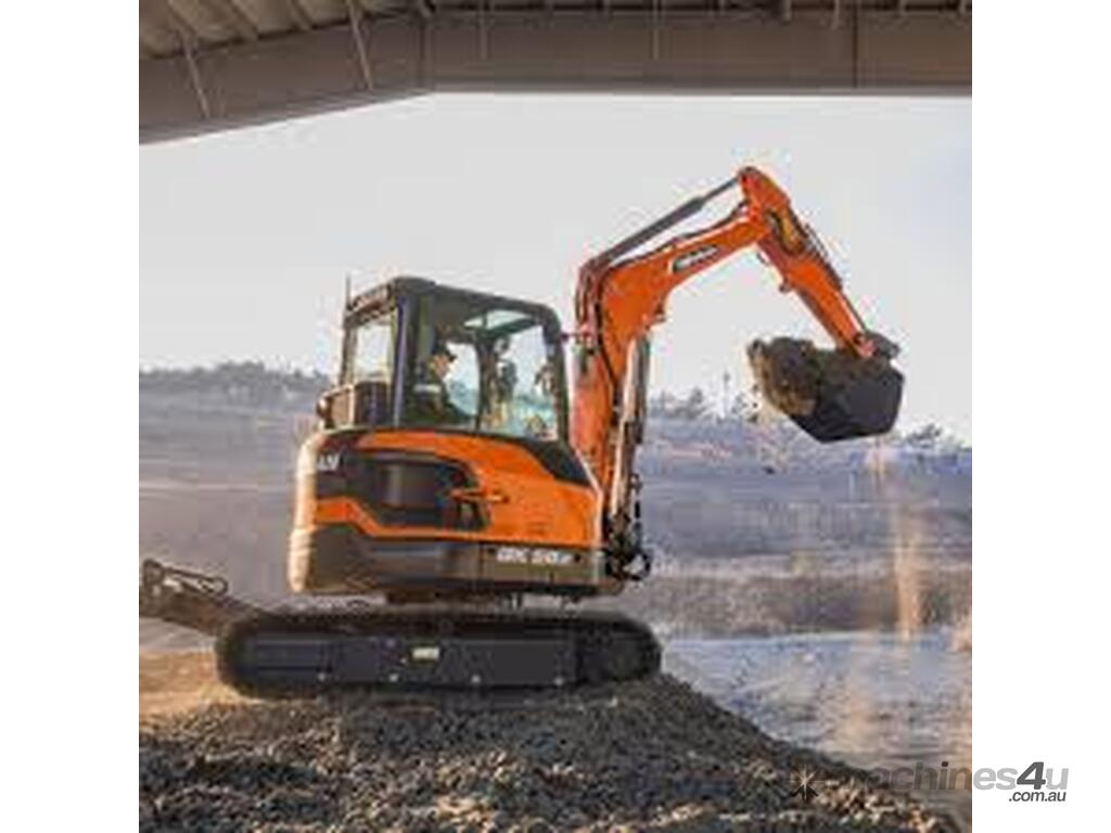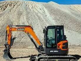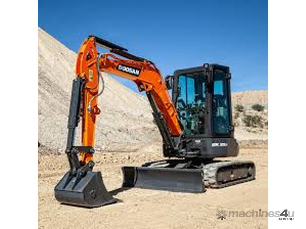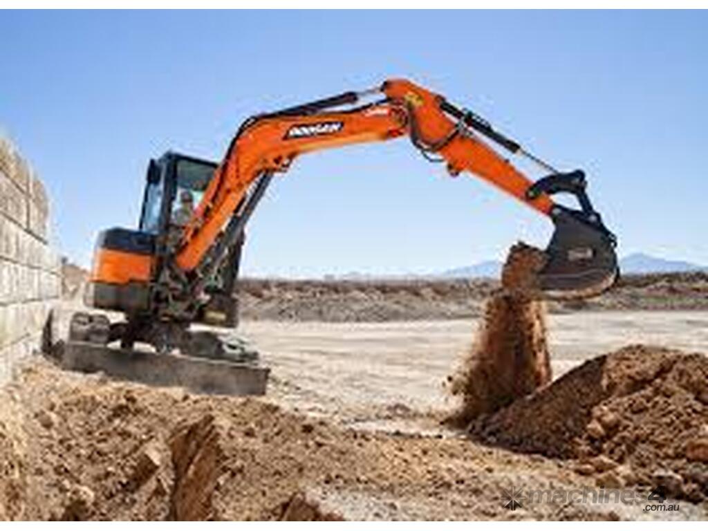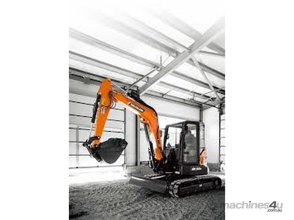 The DEVELON DX50Z Cabin comes with a 300gp 450gp 600gp 1200 Mud Bucket and a Miller Hydraulic Quick Hitch