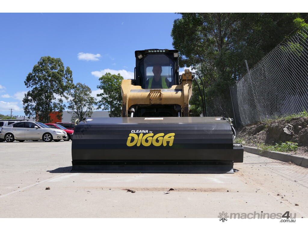 The Cleana bucket broom is a quality Australian made forward and reverse bucket broom for skid steer loaders, front end loaders, and telehandlers. Featuring high performance hydraulic components, a hinged lid for fast emptying, heavy duty wheels, and replaceable bucket wear edge. A removable side shift frame is available in a variety of widths to suit all machines.