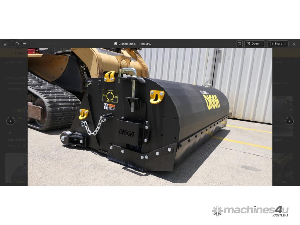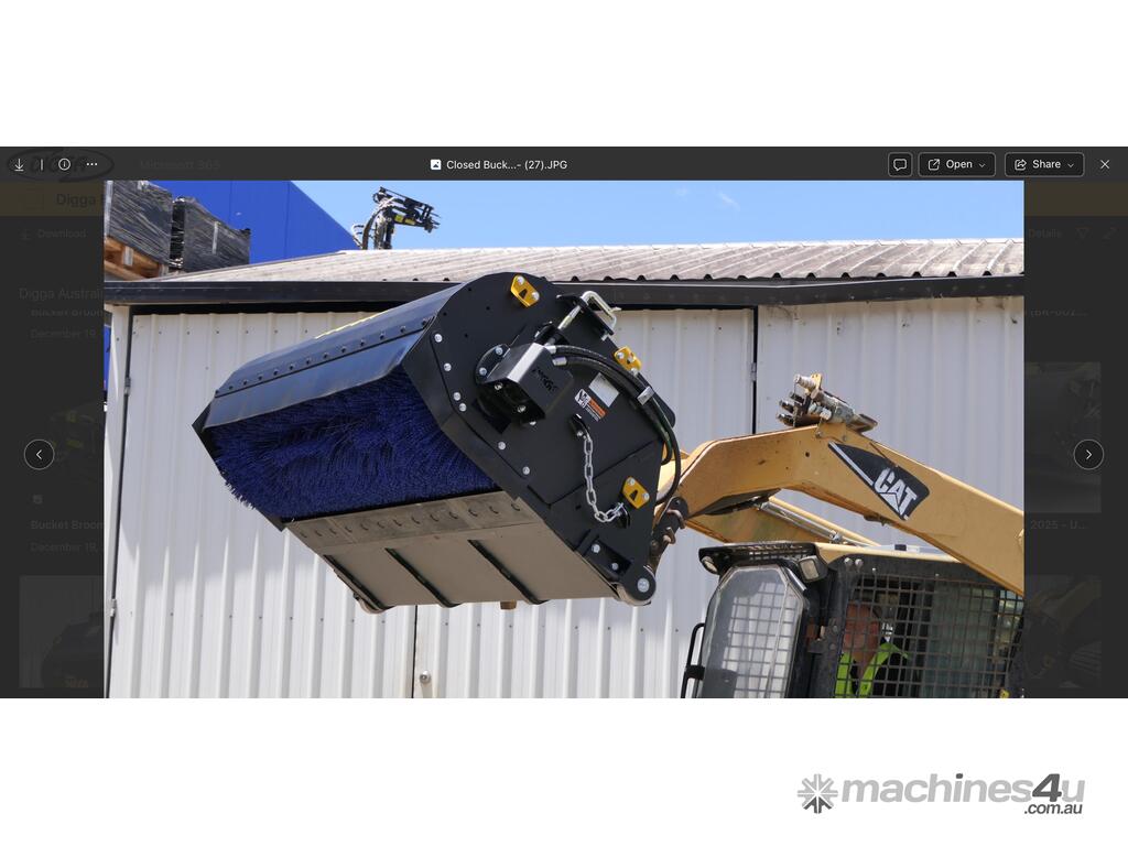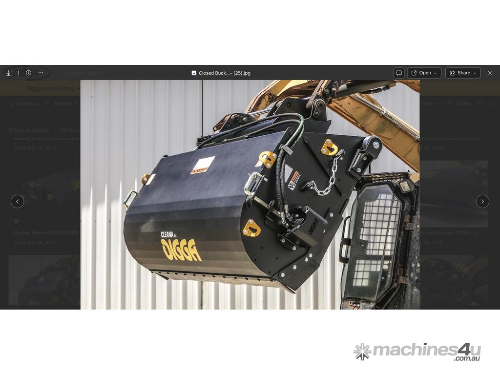 The Cleana bucket broom is a quality Australian made forward and reverse bucket broom for skid steer loaders, front end loaders, and telehandlers. Featuring high performance hydraulic components, a hinged lid for fast emptying, heavy duty wheels, and replaceable bucket wear edge. A removable side shift frame is available in a variety of widths to suit all machines.