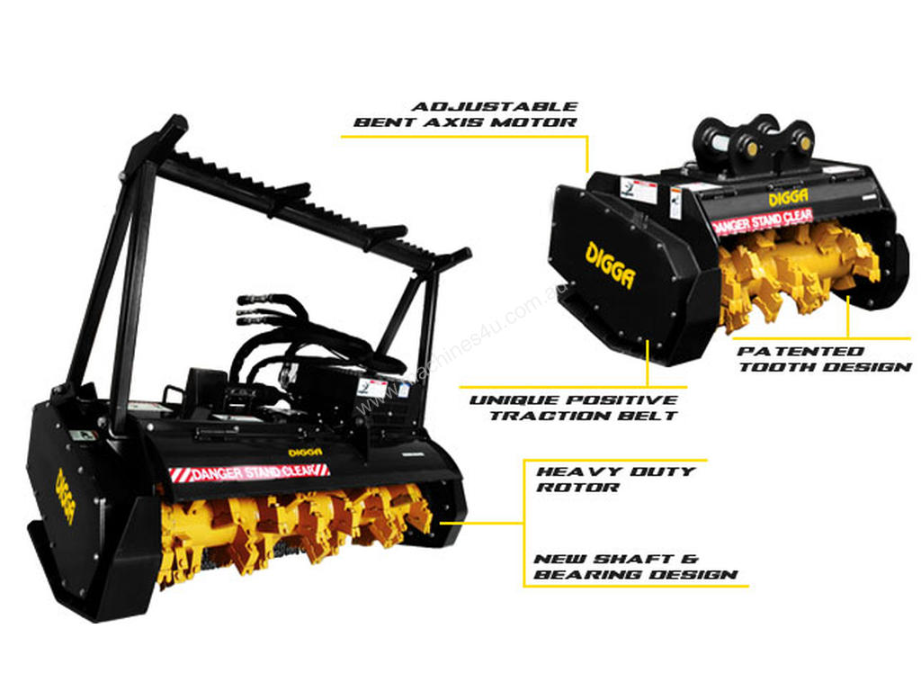 Digga’s Magnum mulcher provides high flow skid steer loaders and Excavators (up to 20 tonnes) with the versatility of grinding small and large material, trees or brush, even above ground stumps with just one operator. Debris can be mulched back into the soil for faster decomposition. Magnum is the perfect value-adding attachment for clearing firebreaks, land, maintenance of park or forestry trails, vegetation management, and re-mediation.