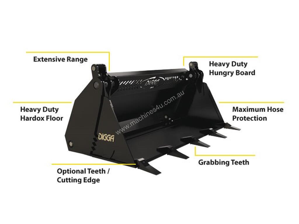 Australian Designed and manufactured using only the highest quality components and materials. Digga has an extensive Mini 4 in 1 Bucket range suited for grading, scraping, grappling, dozing dirt or material spreading, and most construction work.