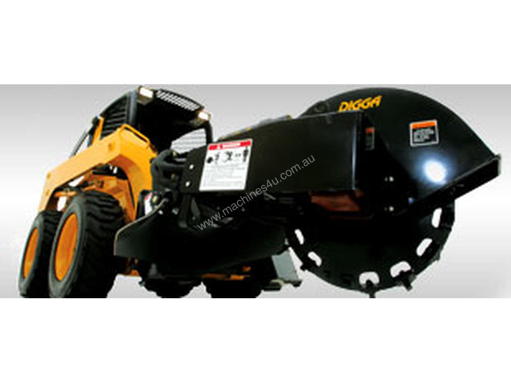 Ideal for skid steer loaders, the Digga stump grinder can be used for land clearing, stump grinding, and the shredding tree stumps into wood chips quickly with Carbide tipped teeth and in-cab fingertip controls.