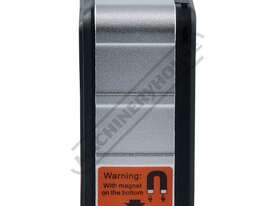 This digital bevel box is a mini protractor that provides digital readings of 4 x 90º with a resolution of 0.1° and auto shut off after 5 minutes. It is small enough to be carried around in a pocket and the LCD screen is convenient to read. It incorporates magnets in the base for accuracy when measuring mitre and bevel angles on mitre saws, saw benches etc.