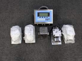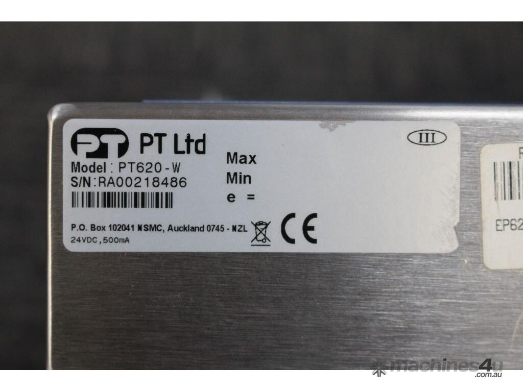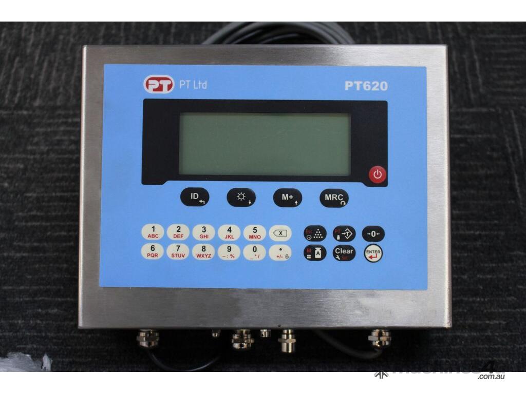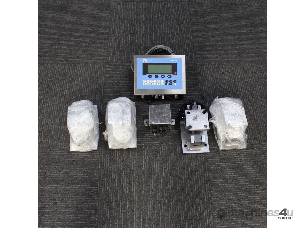 Digital Indicator with Load Cells, "PT Ltd" model PT620-W, with 4 x load cells, "Millenium Mechatronics" model MT404 5Klb, stainless steel and previously used in clean room