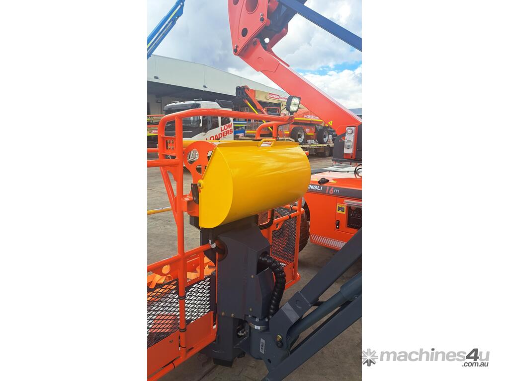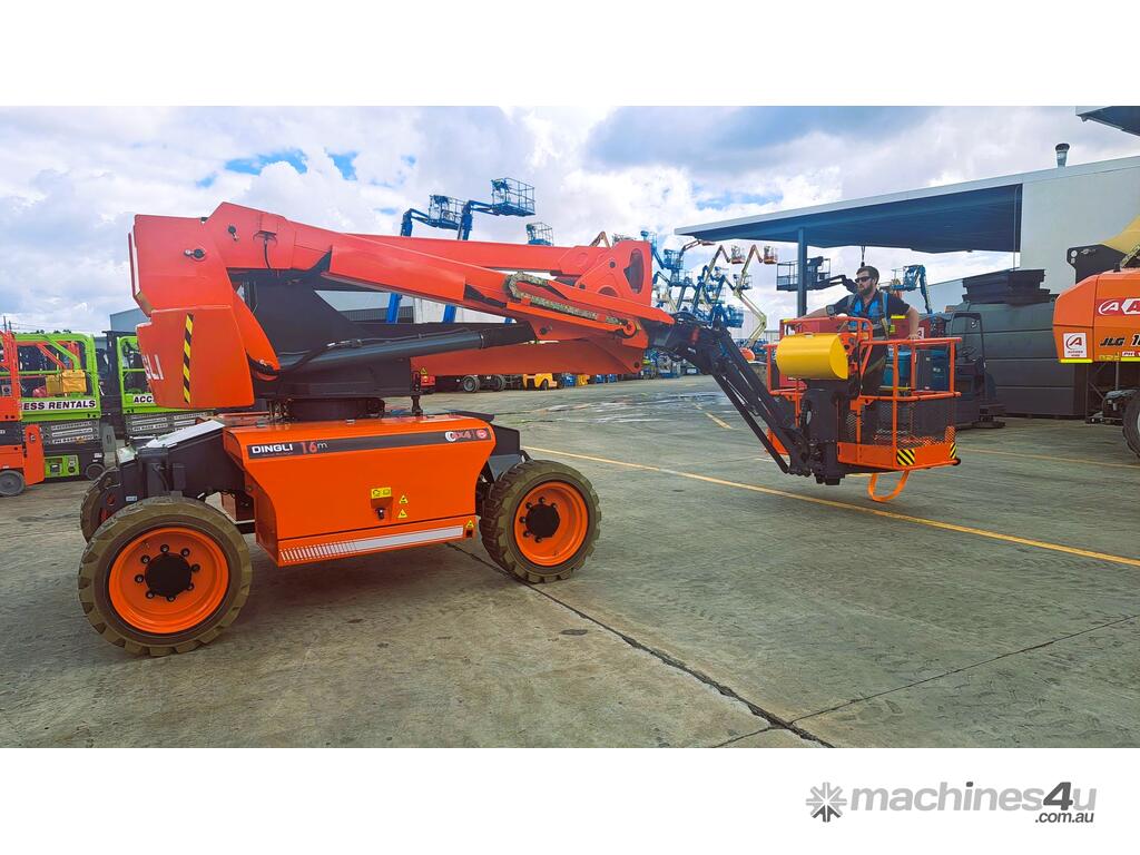 The Dingli BA16CRT is a high-performance diesel articulated boom lift designed for demanding outdoor and rough-terrain applications. It provides a maximum working height of 16.07 m (52 ft 9 in) and a horizontal reach of 8.14 m, allowing operators to access difficult areas with precision and stability. The lift is powered by a Kubota D1105 18 kW diesel engine and supported by a four-wheel drive system with a front oscillating axle for superior traction and balance on uneven ground.