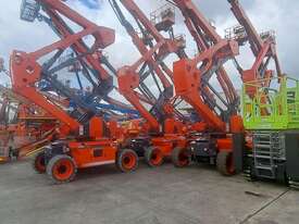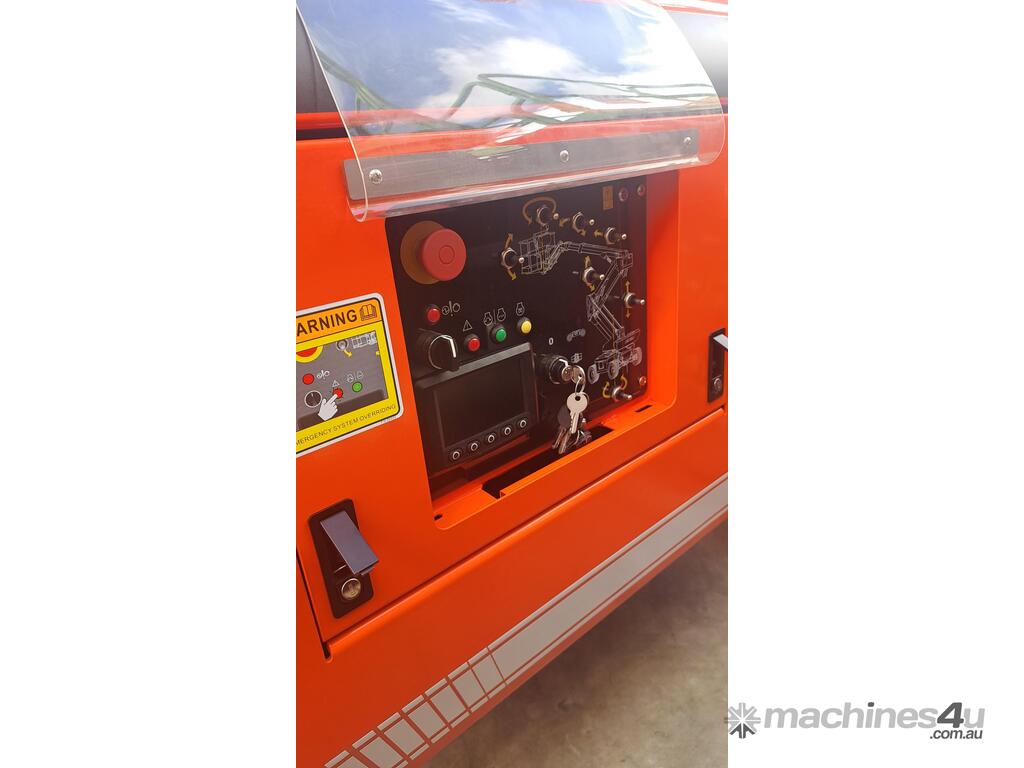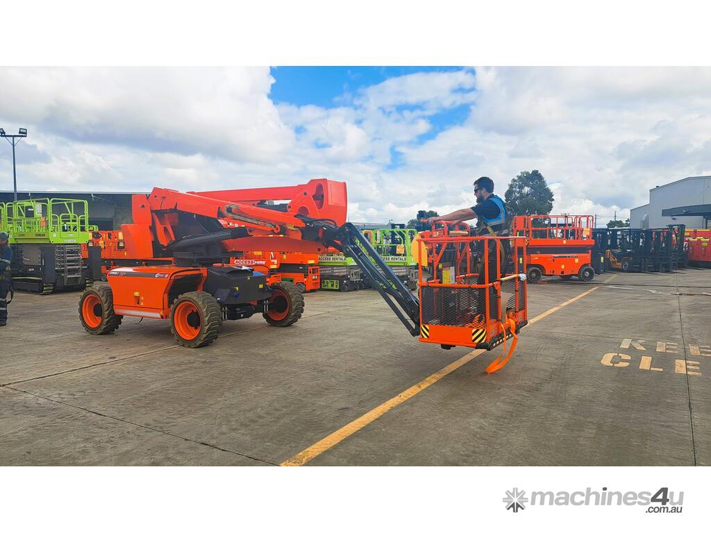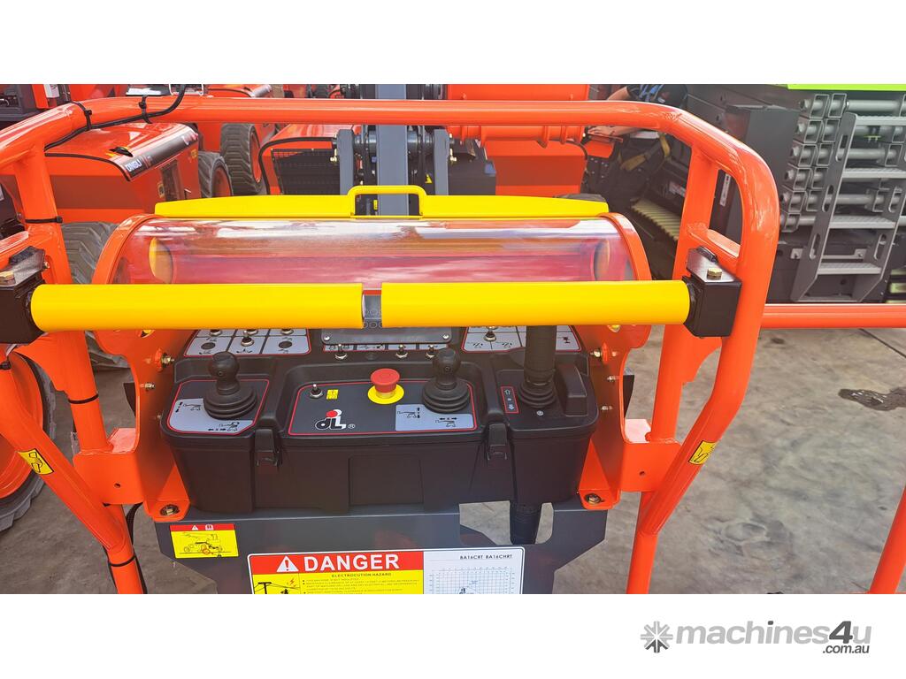 Standard equipment includes self-leveling platform, proportional joystick controls, automatic braking, tilt and motion alarms, pothole protection, hour meter, and automatic engine shutdown. With its robust build and intelligent hydraulic and electrical systems, this model is ideal for construction and infrastructure maintenance tasks requiring reliable height and horizontal reach.