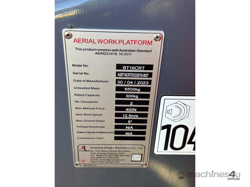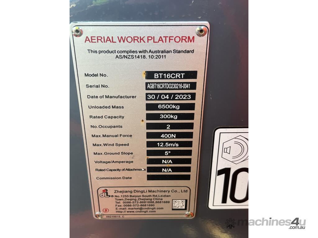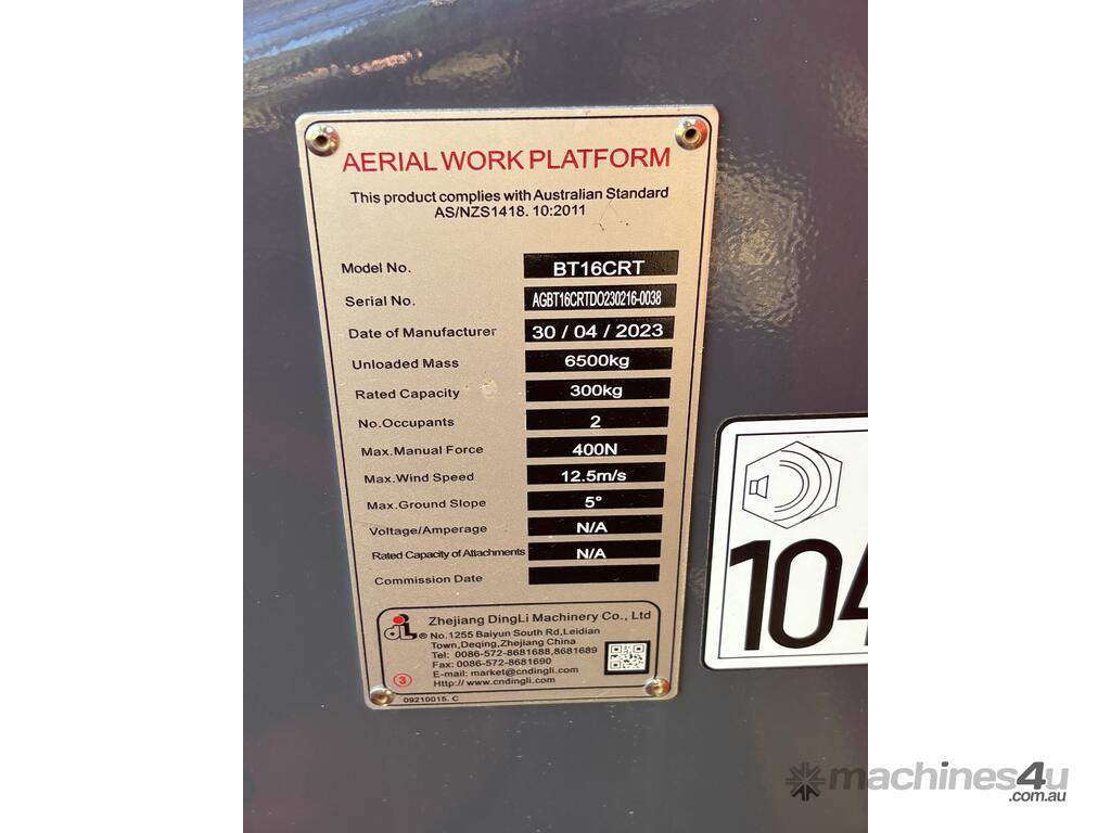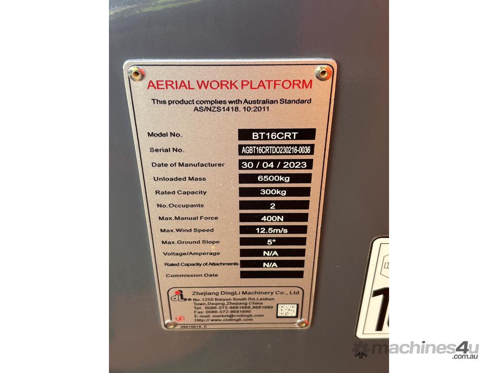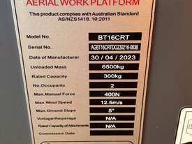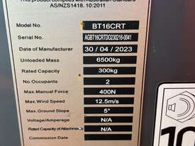 The Dingli BT16CRT is a compact rough terrain articulating boom lift designed for construction, maintenance and industrial access applications. With a platform height of 14.33m and a working height of 16.33m, it provides strong up-and-over reach while maintaining a compact footprint for working in tighter areas. Featuring four-wheel drive, high gradeability and continuous turret rotation, the BT16CRT delivers reliable performance on uneven ground.