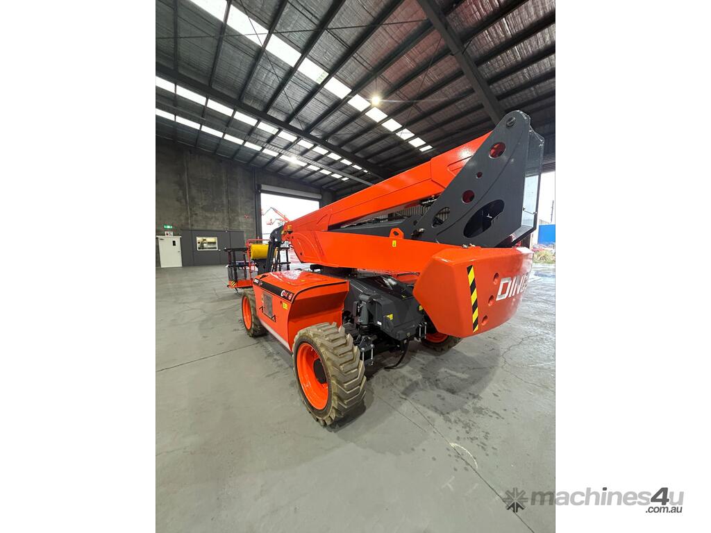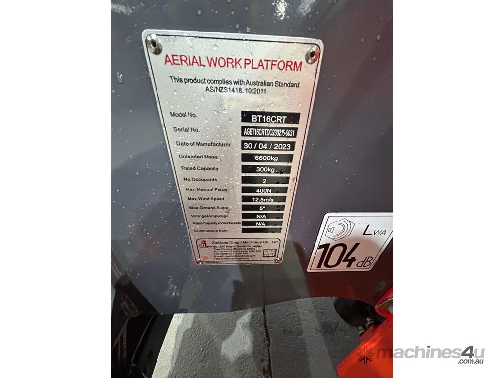 The Dingli BT16CRT is a diesel-powered telescopic boom lift with a platform height of 47 ft (14.33 m) and a working height of 53 ft 7 in (16.33 m). Built for tough rough-terrain conditions, this 2-wheel steer machine delivers a 30 ft 7 in (9.32 m) outreach and 28 ft 7 in (8.72 m) platform range for efficient elevation and lateral access. With a robust 300 kg safe working load supporting two occupants, it’s ideal for heavy-duty construction and industrial applications. The unit features 360° continuous turret rotation, 180° platform rotation, and a 132° jib movement, providing enhanced reach and precision.