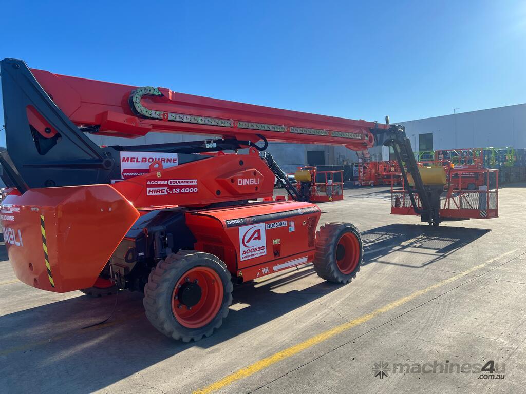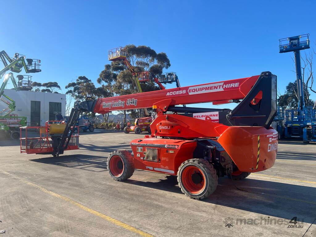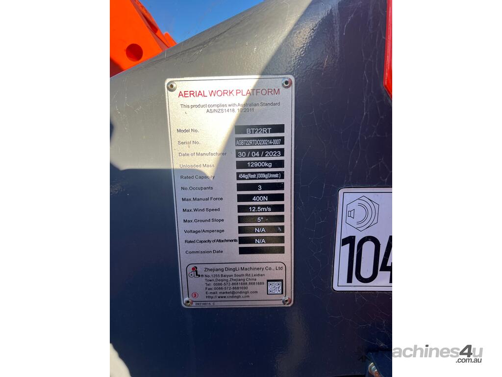 Our Dingli BT22RT, manufactured in 2023, is a 67ft diesel-powered telescopic boom lift designed for rough terrain and heavy-duty applications. It features a platform height of 67ft 4in (20.51m) and reaches a working height of 73ft 10in (22.51m), making it ideal for elevated outdoor operations. Powered by a robust Deutz 36.4kW engine, it supports up to 3 occupants and a safe working load of 454kg. Its 360° continuous turret rotation, 45% gradeability, and 2-wheel steer ensure efficient performance across large, uneven job sites.