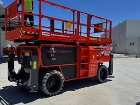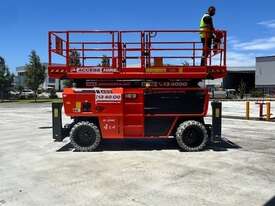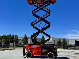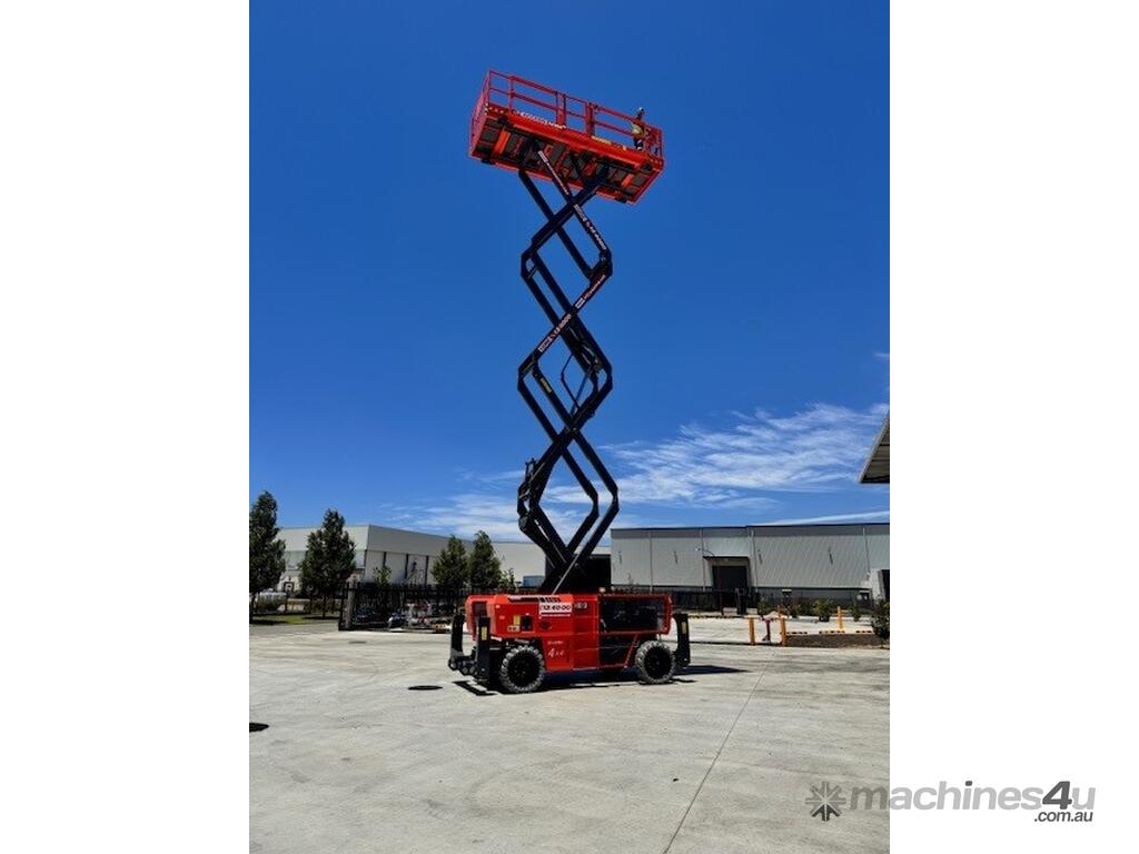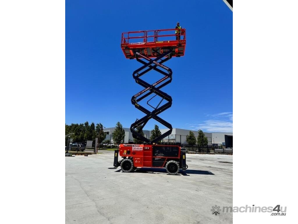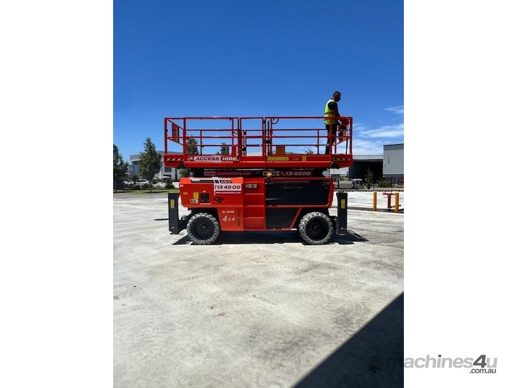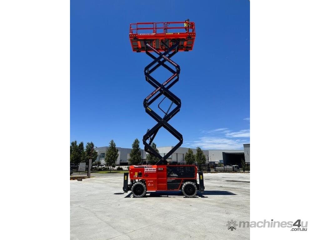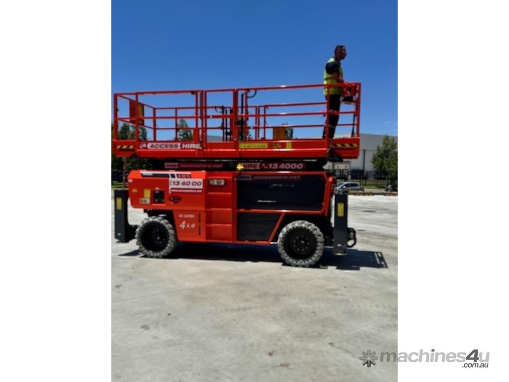 The Dingli SL1323-AWD Series 2 is a 49ft diesel rough-terrain scissor lift built for high-capacity outdoor access on construction and industrial sites. It delivers a working height of 49ft 3in (15.0m), platform height of 42ft 8in (13.0m), and a 680kg lift capacity for heavy-duty elevated tasks. Its large 3.98m × 1.83m platform with a 1.43m deck extension provides ample workspace. With all-wheel drive, 50 percent gradeability, and a wide stance, it offers strong traction and stability on uneven terrain.
