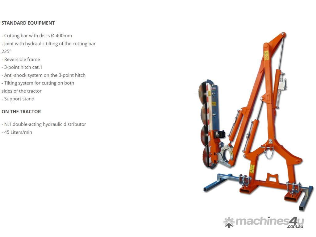 Max height vertical 6 metres. Max height horizontal 3.8 metres. The bar can be changed to hedge trimmer. Independent hydraulic power pack available if necessary. 40 litre /min oil requirement.