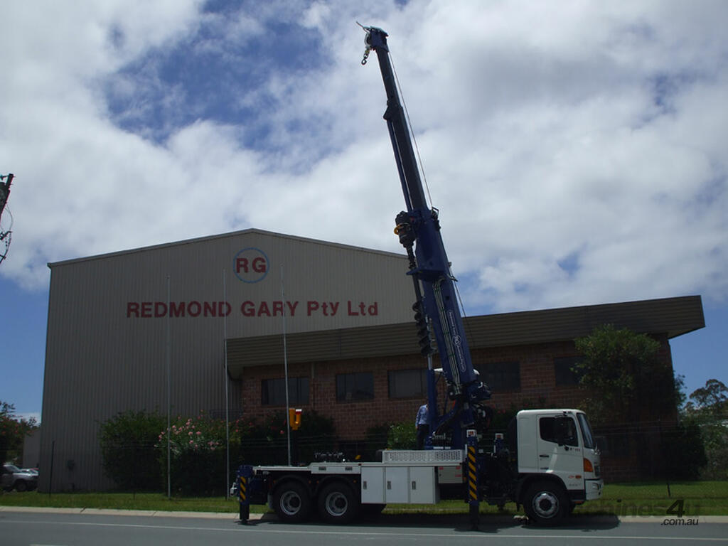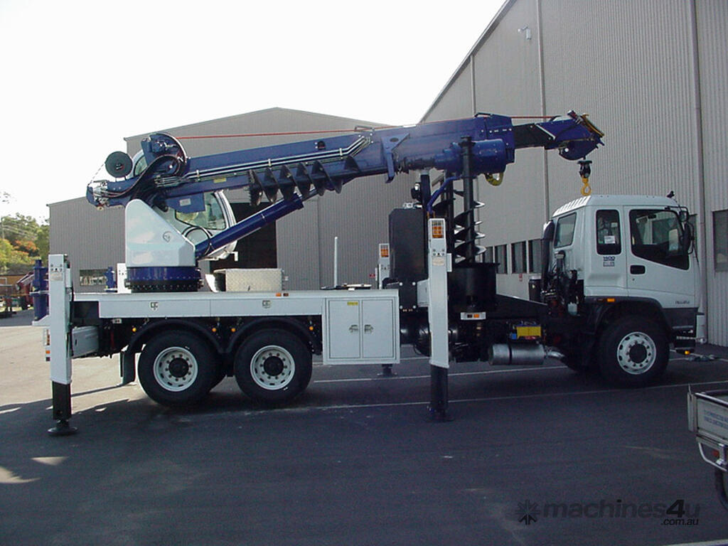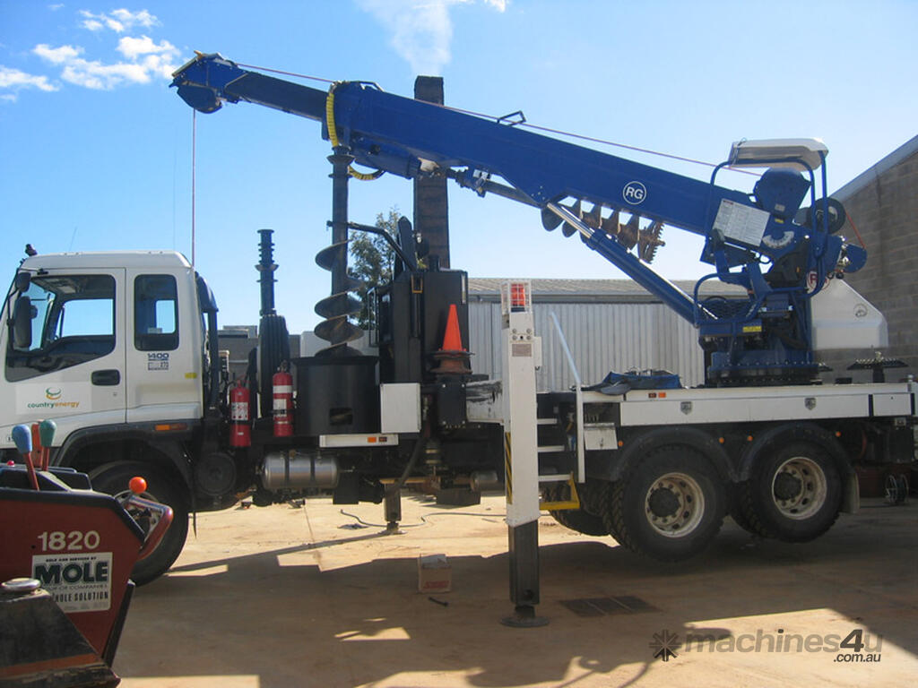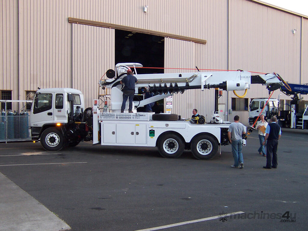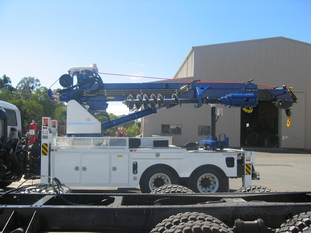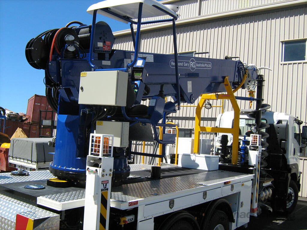 The PoleERU was originally designed in 2001. After 14 units were manufactured, the PoleERU was subject to re-design based on market feedback. The current model was re-released to the market in 2008. The PoleERU has been completely designed using 3D engineering design tools and finite element analysis utilizing the latest materials and best practices. This simple but rugged design is specific to the Australian market and takes into consideration that many machines are located in remote areas and must be easy to maintain. The machine features a high strength boom with superior lifting height capabilities. The PoleERU is equipped with radial piston motor-driven epicyclic gearbox which has speed range from 0-63 rpm and has maximum torque output of 18,600 Nm. The machines are offered in pilot operated joystick type control or radio remote and can be offered on special request in 6-tonne /10-tonne version. Some of the specific design features are as follows: