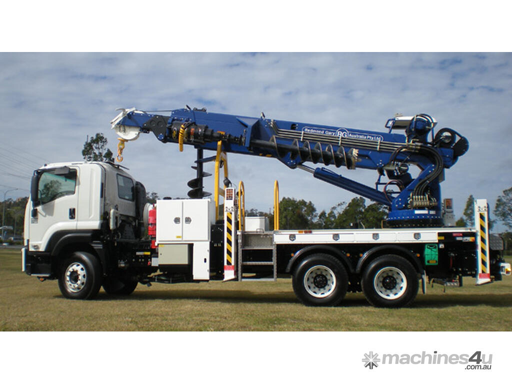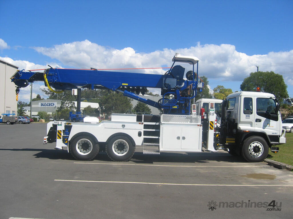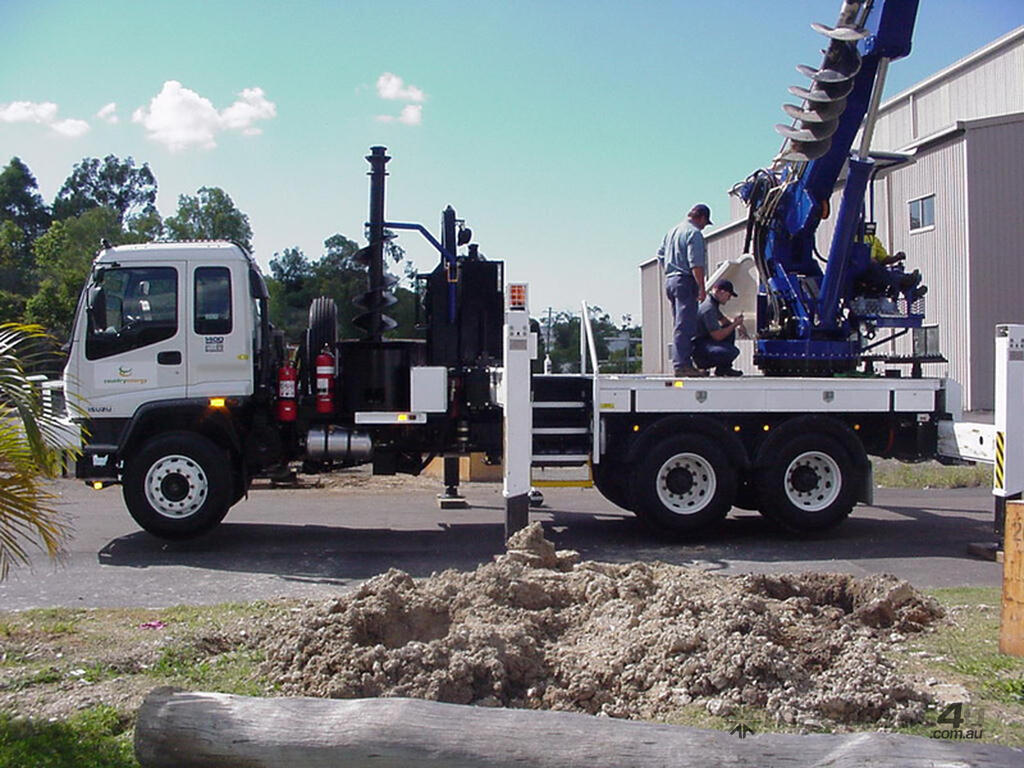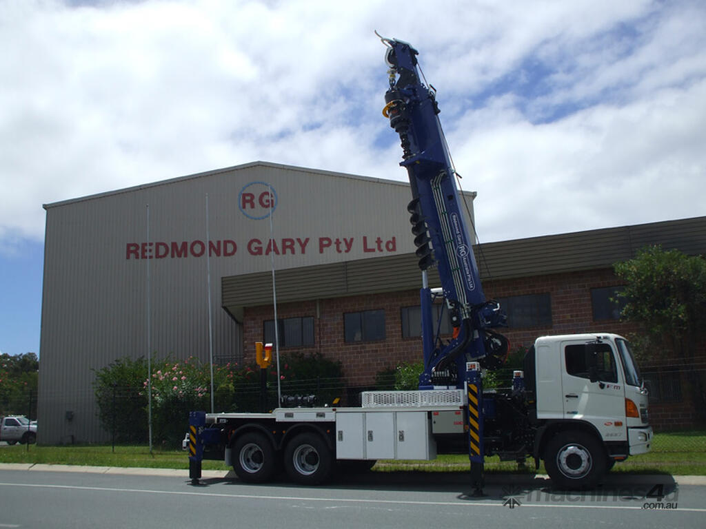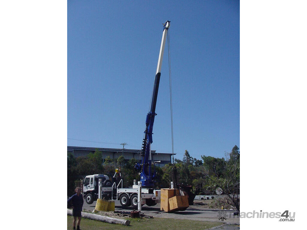 The PoleERU was originally designed in 2001. After 14 units were manufactured, the PoleERU was subject to re-design based on market feedback. The current model was re-released to the market in 2008. The PoleERU has been completely designed using 3D engineering design tools and finite element analysis utilizing the latest materials and best practices. This simple but rugged design is specific to the Australian market and takes into consideration that many machines are located in remote areas and must be easy to maintain. The machine features a high strength boom with superior lifting height capabilities. The PoleERU is equipped with radial piston motor-driven epicyclic gearbox which has speed range from 0-63 rpm and has maximum torque output of 18,600 Nm. The machines are offered in pilot operated joystick type control or radio remote and can be offered on special request in 6-tonne /10-tonne version. Some of the specific design features are as follows: