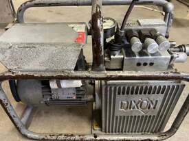 Includes frame with all clamps (some removed for picture), cutter with Bosch GRW-11E mixing drill, heating plate, self-centring stub flange fittings chuck and Dixon EHF hydraulic pack.