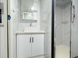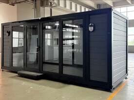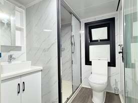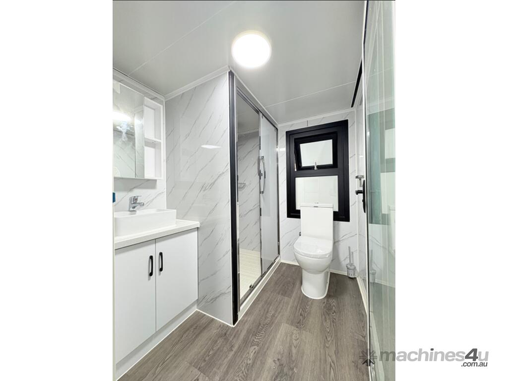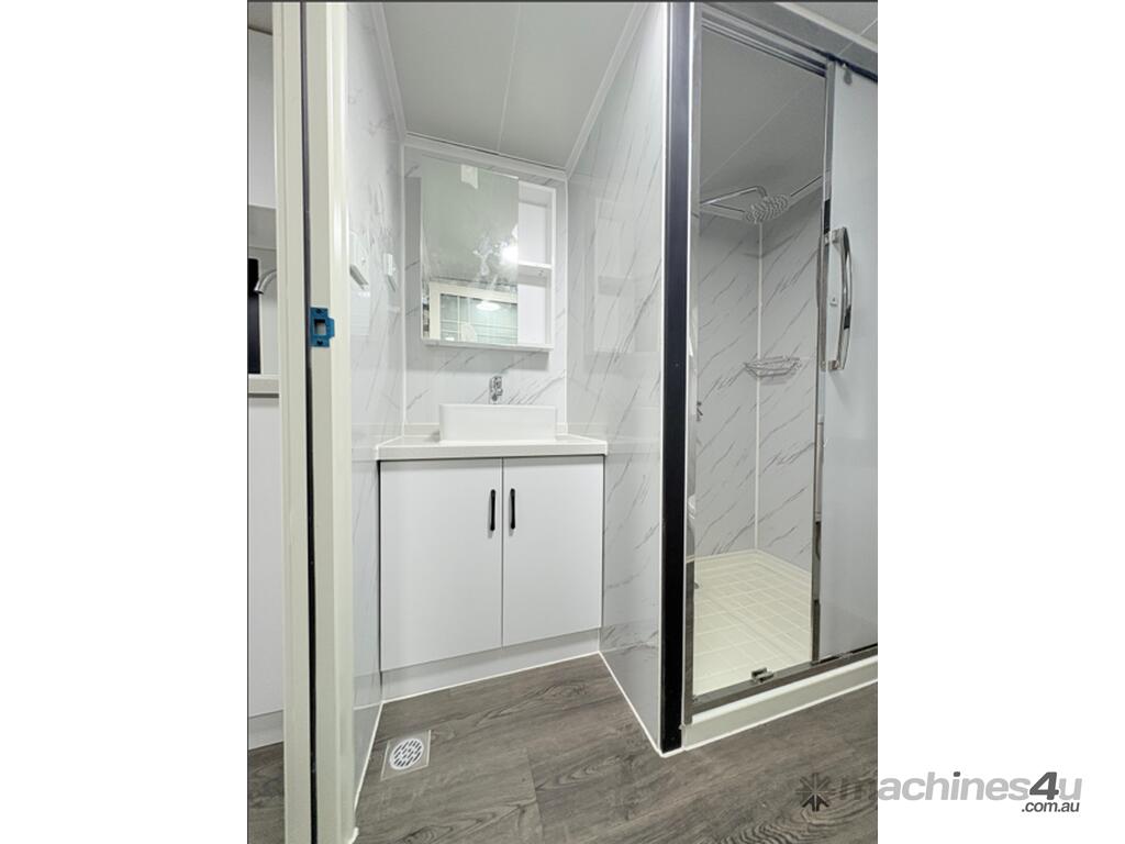 Donga 6m Accommodation Bedroom Kitchen + Bathroom Side pop out. Pops out to 4300. Has bedroom. Table Cupboards Kitchen. Bathroom with shower toilet and hand basin