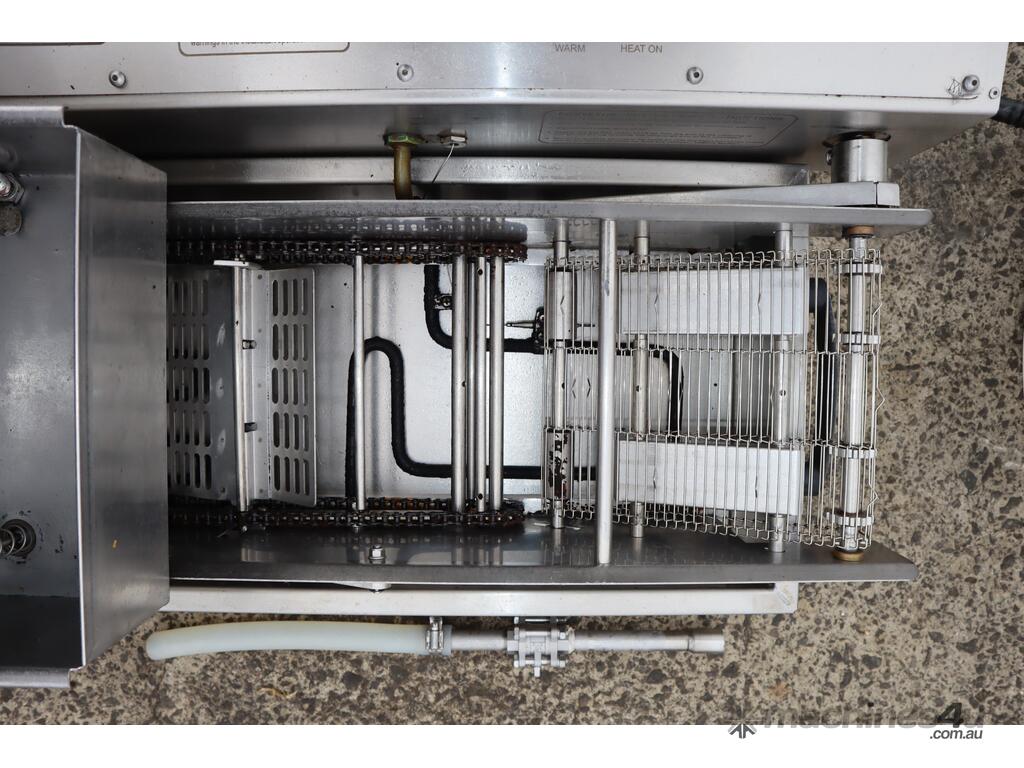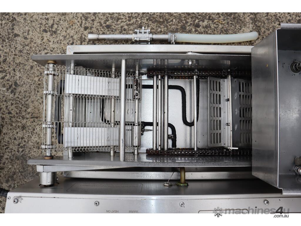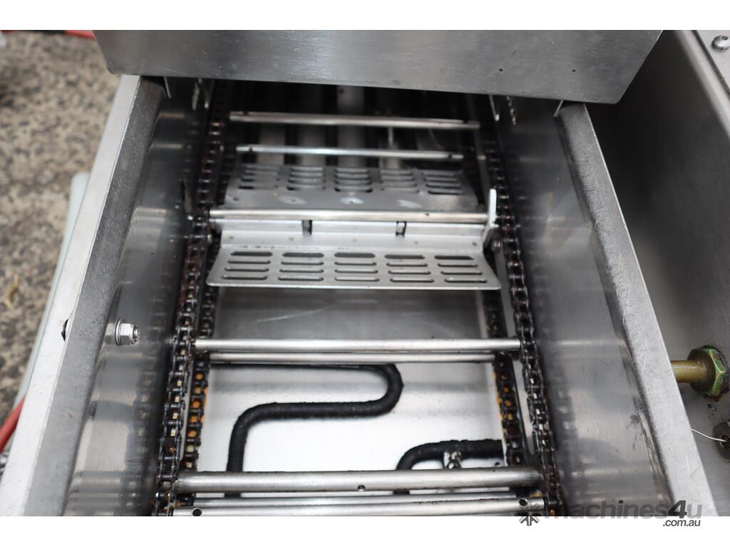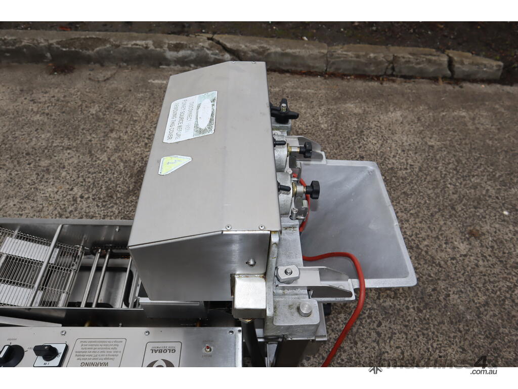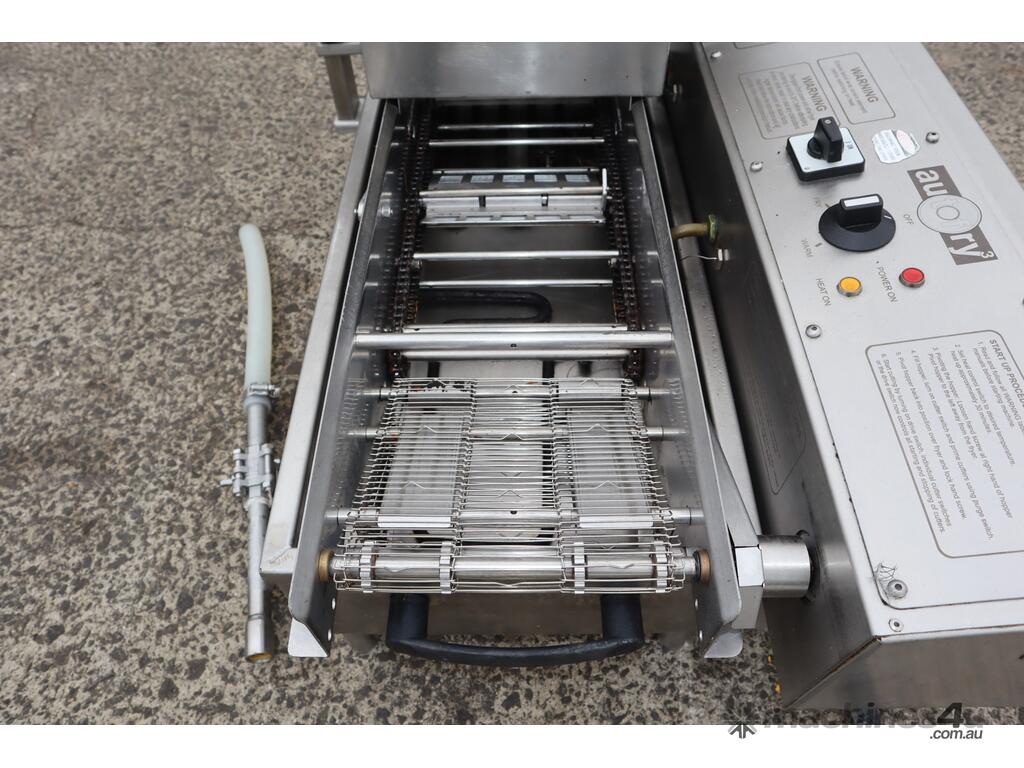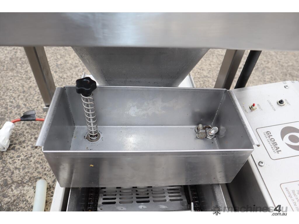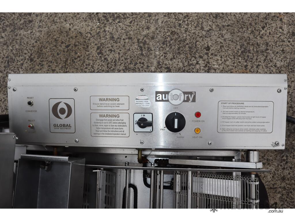 "The Autofry 3 by Global Food Equipment is a heavy-duty, fully automated donut machine designed for efficient and profitable cake donut production. Key features include a unique twin plunger system, a conveyor temperature interlock, and an emergency stop button. It has a hopper capacity of 7.5 kg and can produce 456 standard donuts or 912 mini donuts per hour. This unit is ideal for bakeries seeking to enhance production efficiency and product consistency while minimizing maintenance and downtime. "