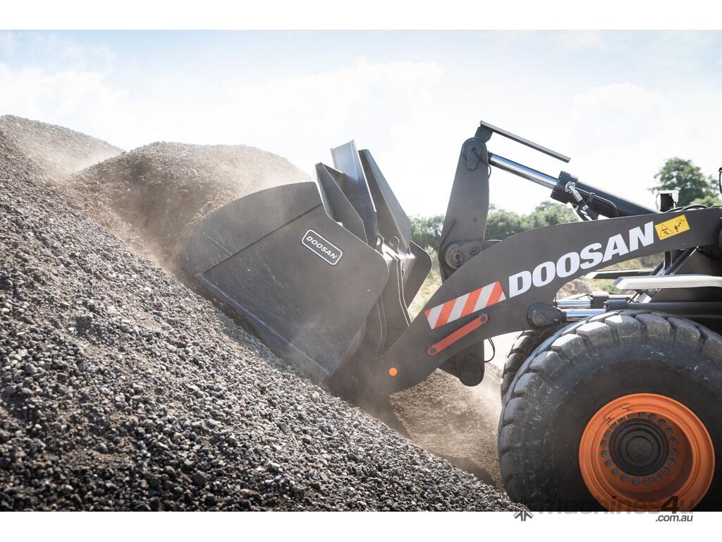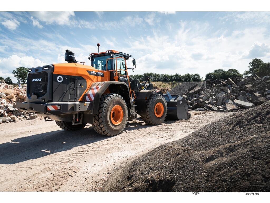 The DL420-7 introduces a fresh look for the Doosan wheel loader range, with a brand new spacious, ergonomic cab and innovative features for higher productivity, increased controllability and operator comfort.
