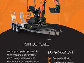 Description: The Develon DX19Z-7B mini excavator is engineered to deliver powerful performance in a compact, zero-tail swing design, making it the perfect choice for navigating tight job sites. Powered by a reliable Yanmar engine, this machine offers an operating weight of 1,995 kg and a bucket capacity of 0.05 m, providing the perfect balance of power and precision for utilities and commercial building construction projects. Its impressive digging reach of 3,810 mm and maximum digging depth of 2,180 mm ensure you can tackle a wide range of tasks with ease and efficiency.