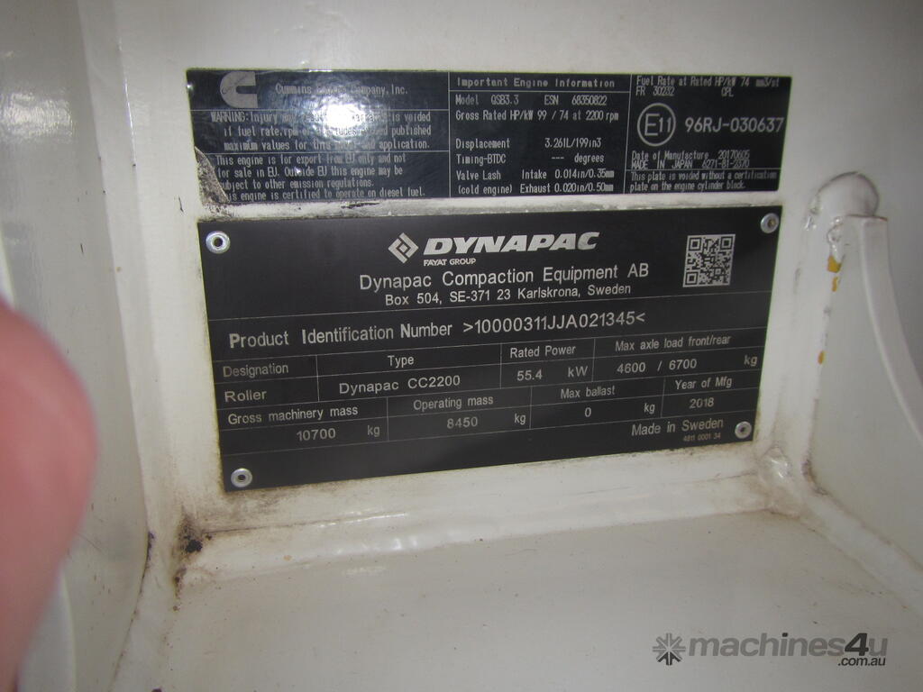 2018 Dynapac CC2200 8Ton Double Drum Vibratory Roller