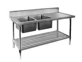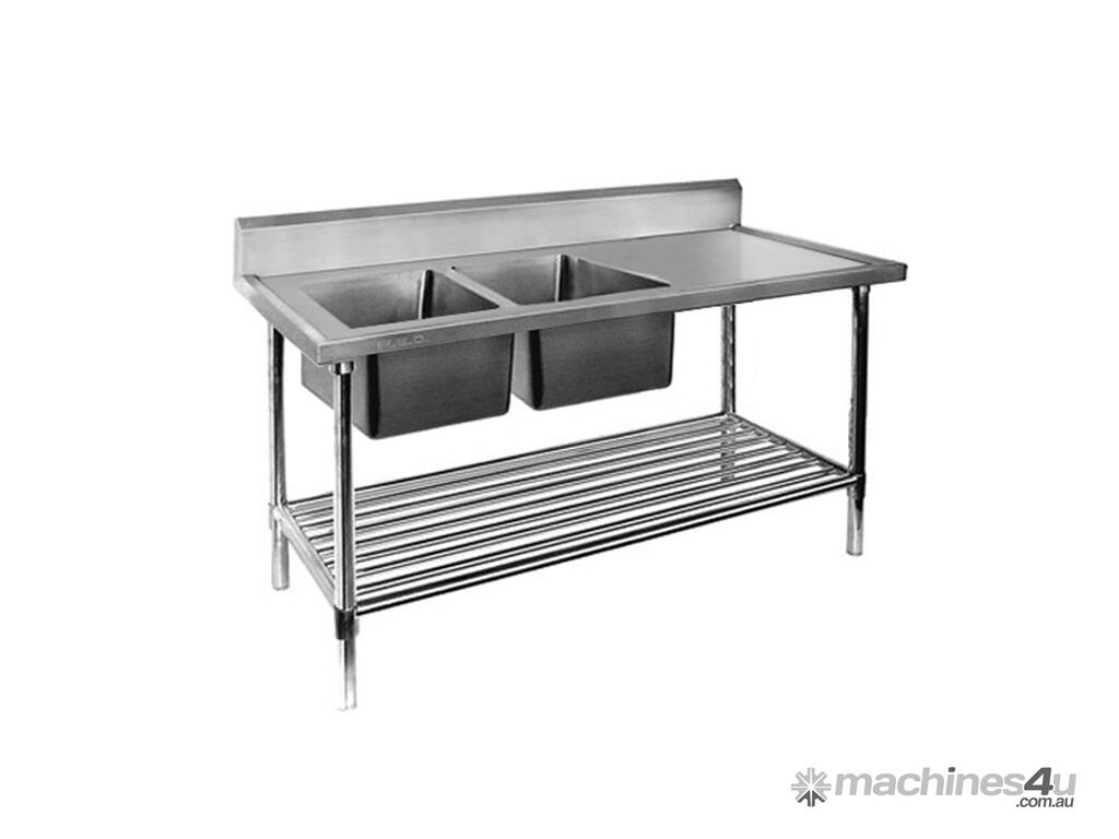 All Stainless Steel Double Left Sink Bench with Pot Undershelf - DSB7-1500L/A Modular Systems, one of the most renowned catering equipment and stainless steel bench suppliers, comes to us with the highly durable and strong stainless steel sink bench with included pot shelf. These sink benches are essential to maintaining a clean and hygienic kitchen, which is a necessi ty to any hospitality workspace or restaurant. 1500 mm wide Free optional leg brace instead of pot shelf , please specify leg brace on order if required • Bowl size 450mmW×450D×300H; 90 mm Ø drain hole • 700 mm deep × 900 mm high • Specially designed for quick & simple assembly • Comes with instruction manual & tools • Supplied flat-packed for ease of transport • 4 legs per bench - 2100 & 2400 mm wide benches have 6 legs • 1.2 mm S/S • 15 mm wet edge • Left bowl positioning • Bowls are fully welded, polished inside & out • 90 mm Ø drain hole Splashbacks • Stainless Steel backed • 150 mm high; 40 mm thick • Bevelled • fully enclosed Legs • 1.2 mm S/S; 42 mm Ø • Fully adjustable S/S polished disc feet that match the legs perfectly • Castor kits available (lockable) Benchtops • 1.2 mm material; SUS304 (18/8) • Lined with XPS board, 15 mm thick & S/S panel • Special S/S ‘U’ channel reinforcements under - As the bench size increases so does the number of channels Pot Undershelves • 1.2mm S/S (18/8) • Outer frame tubes: 38 Ø 1.2 mm tube • Inner tubes: 25 Ø 1 mm tube with 40 mm spacing 2 Years Parts only Warranty Depth: 700 mm | Width: 1500 mm | Height: 900 mm | Price: $1440 | Manufacturer: Modular Systems | Warranty: 2 Years Parts Only