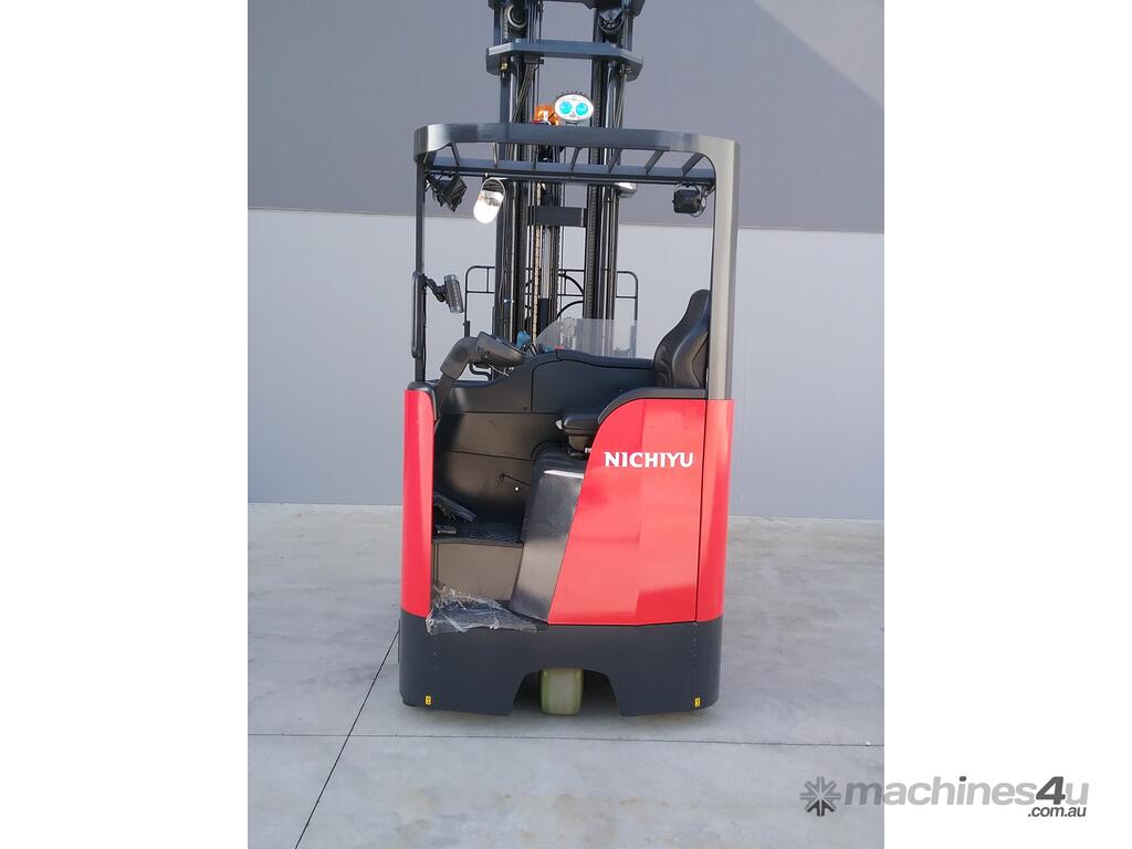 Double deep sit on narrow aisle reach truck 2000kg base capacity.at front pallet this unit is fitted with hydraulic telescopic reach forks to enable unit to work in double deep pallet racking can lift 600kg pallets to back pallet note this style of double deep unit does not require a bottom racking beam as pantograph double deep reach trucks do. Unit has low hours will be offered reconditioned by our Nichiyu workshop technicians with brand new Century traction battery and external 8-hour battery charger requiring a 20 amp 3 phase charger outlet. Or can be supplied with an external Century fast charger for multi shift or 24/7 applications.