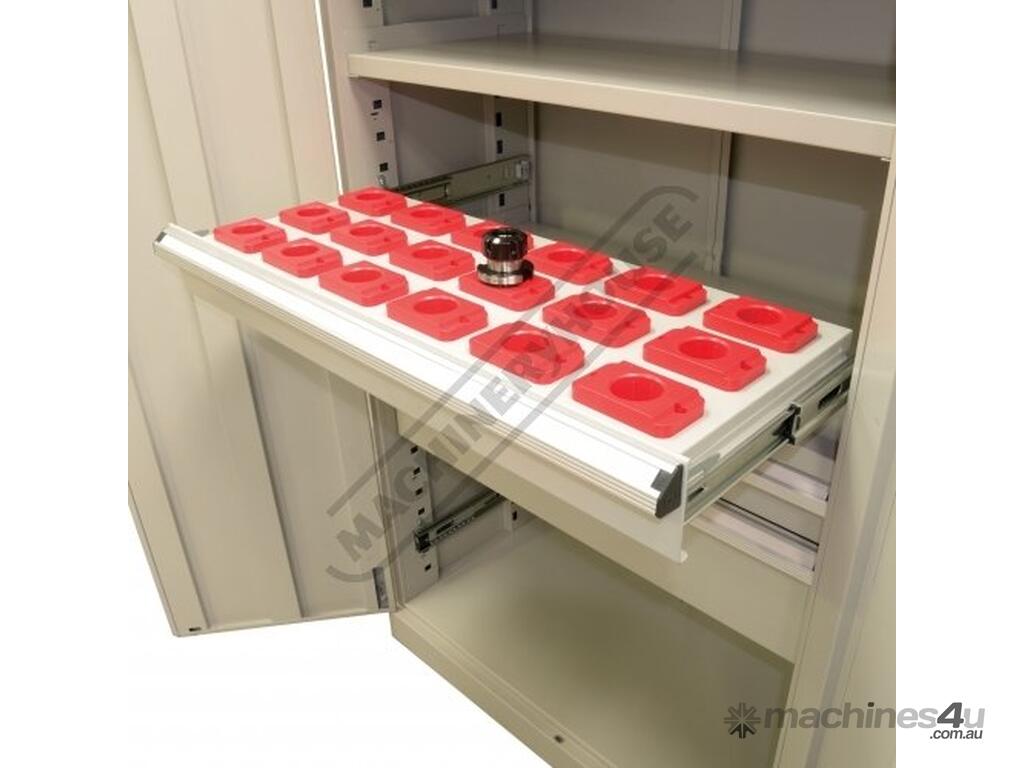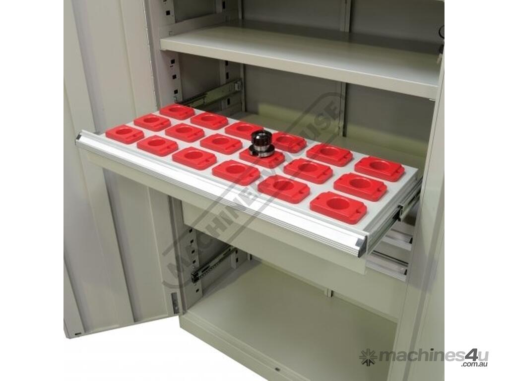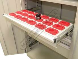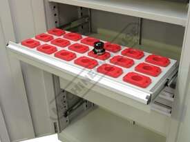 The SCD-40H tooling drawers equipped with 18 tool holders. Designed for storing NT40 or BT40 tooling