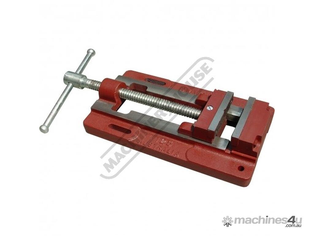 These vices are made in Australia and are designed specifically for machine shop or tool room use and have accurately machined slide faces, case hardened replaceable steel serrated jaws, corrosion resistant screw and handle. The bottom of the base is also machined for stable mounting and slots are provided for holding down bolts.