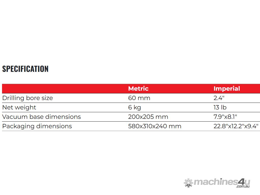 A Drill Stand is preferable to a hand drill when the location and orientation of the hole must be controlled accurately. The Aardwolf Drill Stand is a lightweight, versatile drill stand and features a powerful integrated vacuum base making it instantaneous to set up with no need for anchoring or clamping. The Aardwolf Drill Stand quickly attaches to both smooth and rough flat surfaces once vacuum is applied. The vacuum base provides exceptional stability.