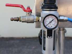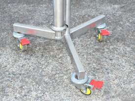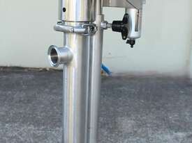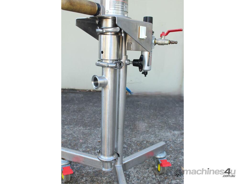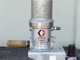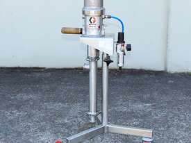 Drum Pump, "Graco", Model 207-546, Series B95F, air operated, mounted on a mobile stainless steel base with 32mm dia tri-clover inlet and outlet