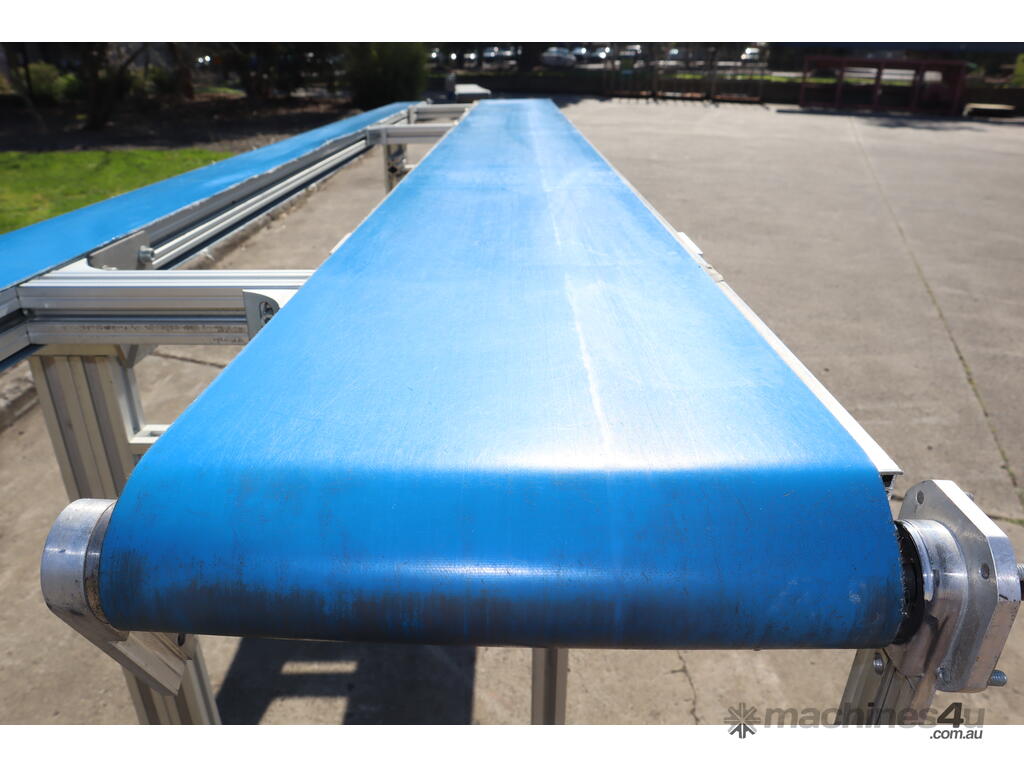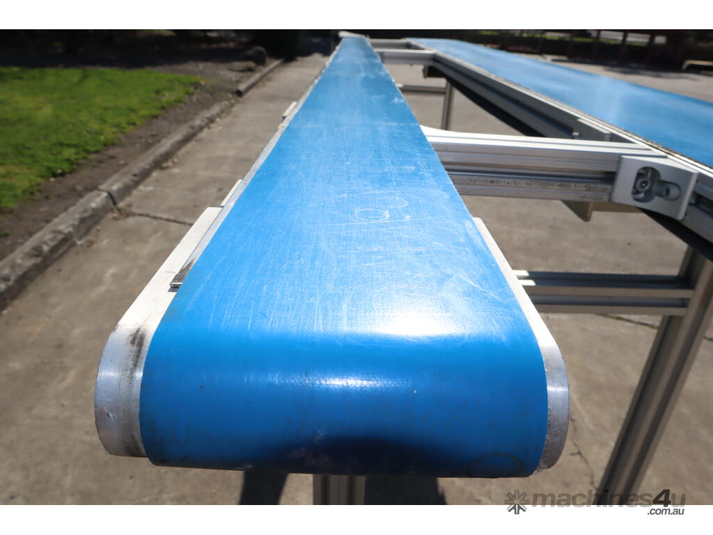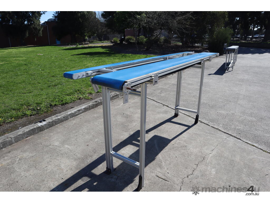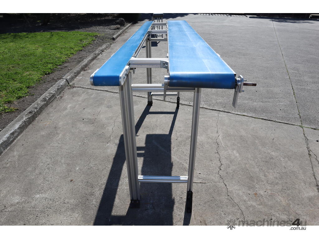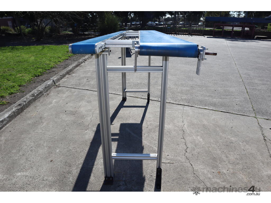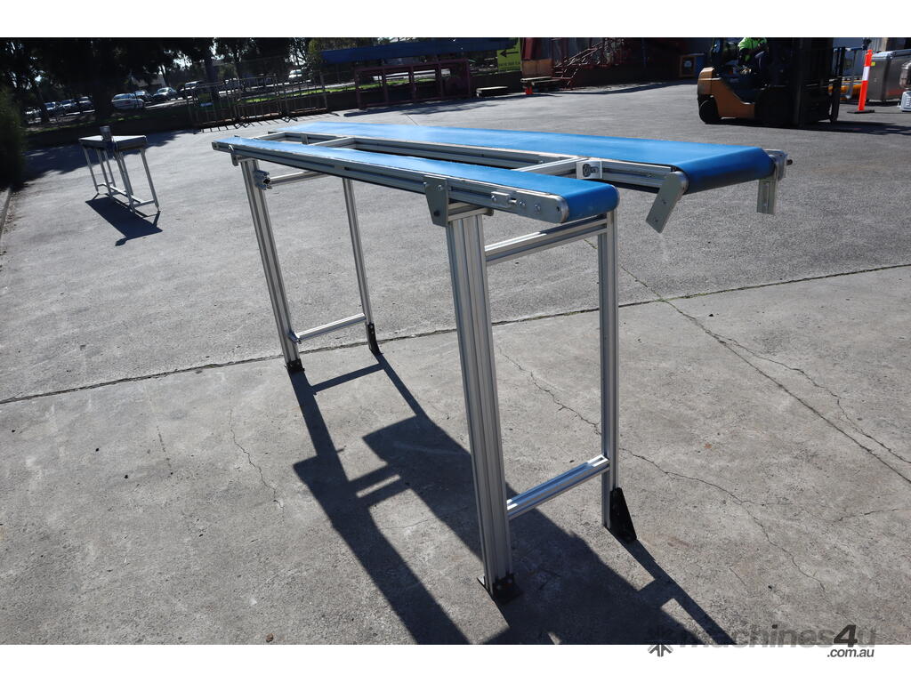 "This dual belt conveyor system is ideal for light to medium-duty operations in various industries such as packaging, material handling, and food processing. It is constructed from durable extruded aluminium, making it lightweight, corrosion-resistant, and suitable for a wide range of environments."
