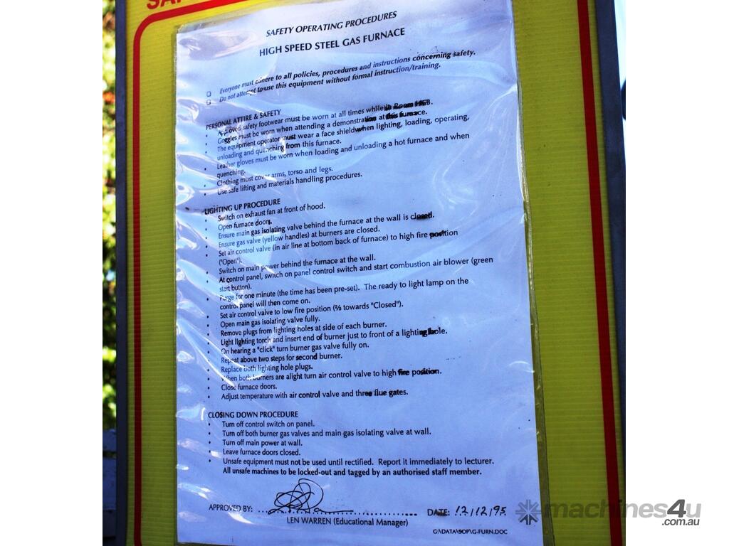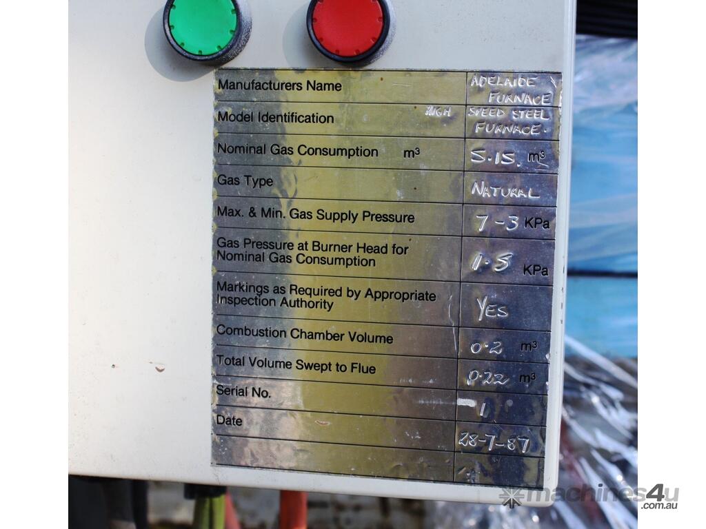 1987 Dual Chamber High Speed Steel Furnace manufactured by Adelaide Furnace.