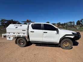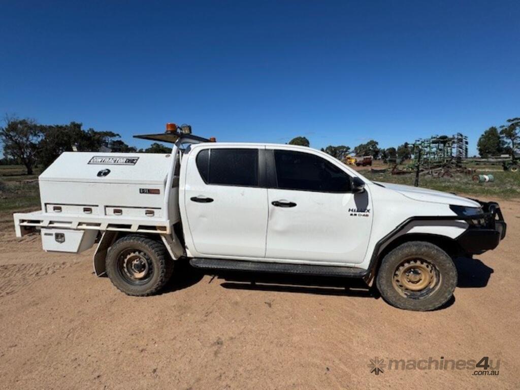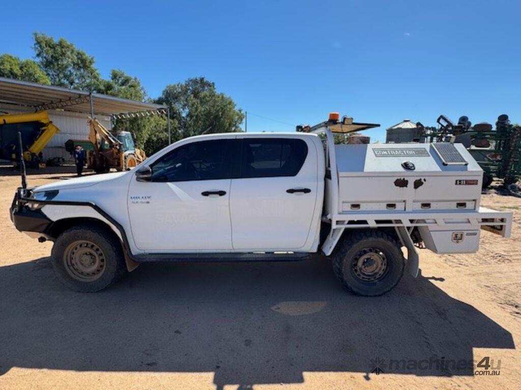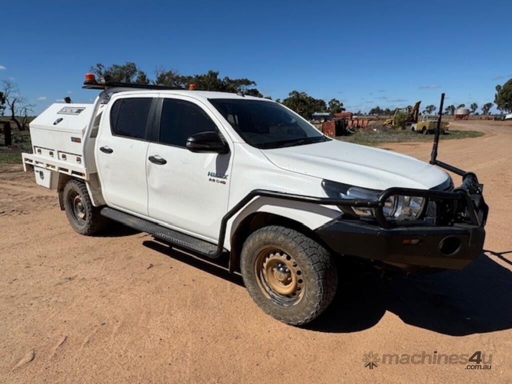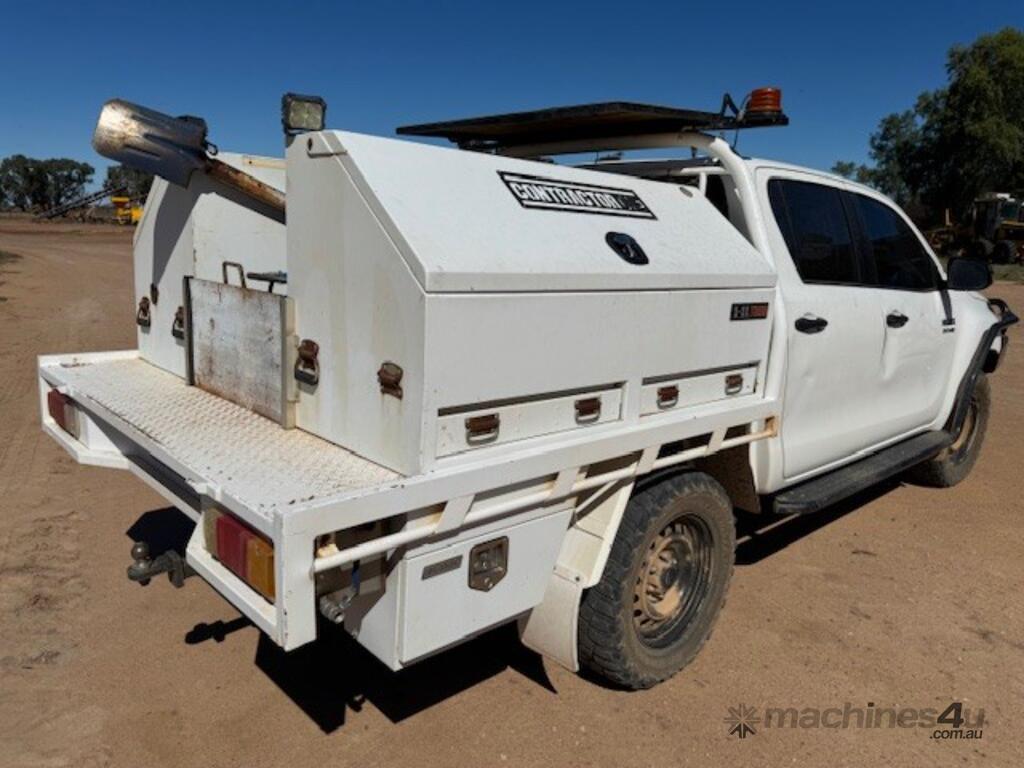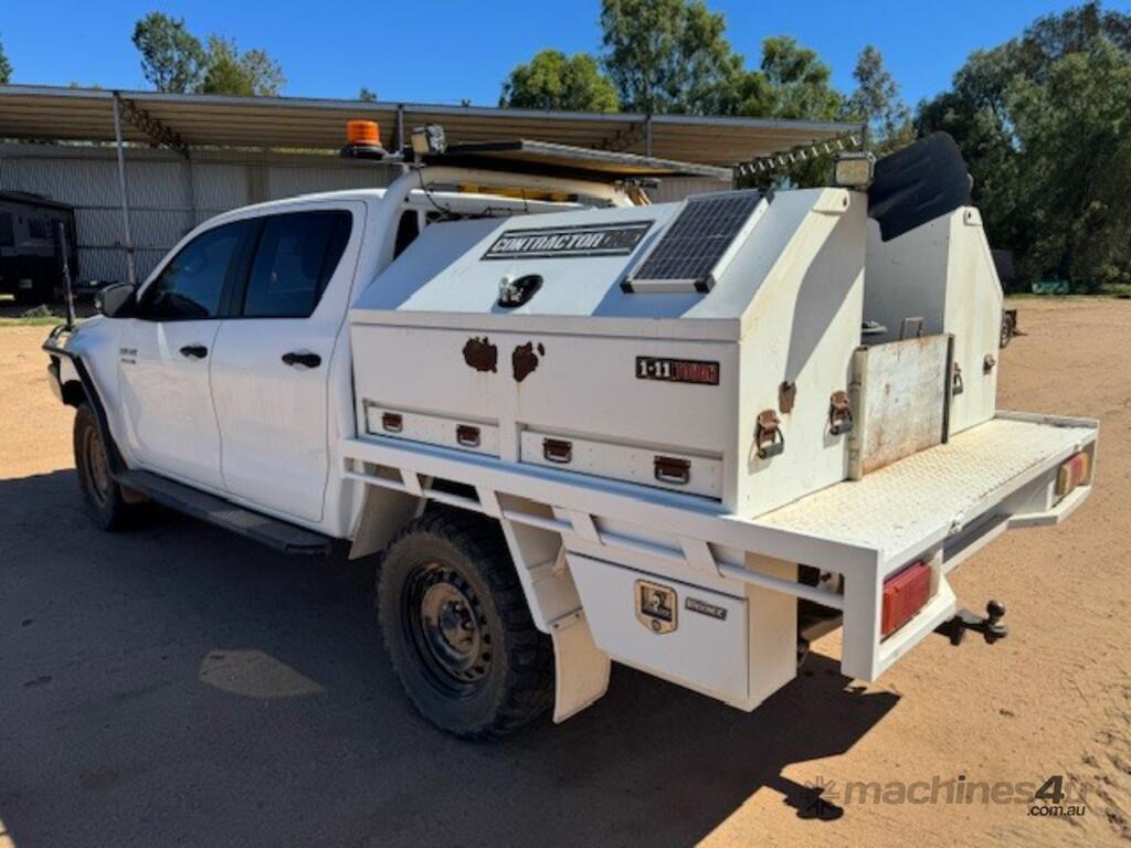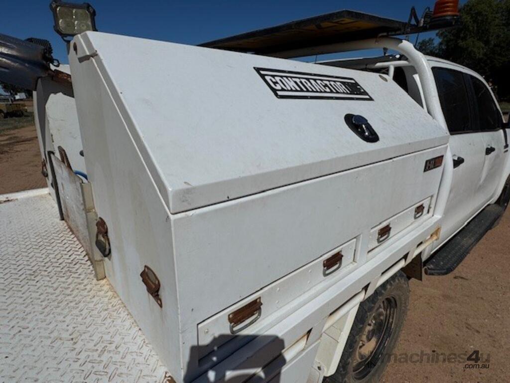 2018 Toyota Hilux SR, 4x4, 2.8 litre 4 cylinder diesel, indicating approx 249,000kms, bull bar, side rails, side steps, driving lights, beacons, oversize sign, stainless water tank, dual battery system, steel tray, towbar, UHF, tool boxes, winch.