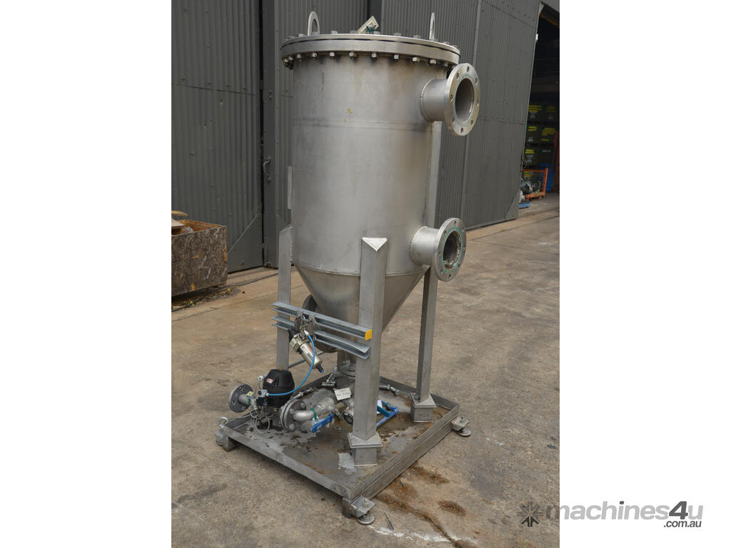 These were originally used for filtration of chemical baths for electro paint deposition primer for the automotive industry , the base outlet is 50mm and includes an actuated diagram valve on the sludge discharge.