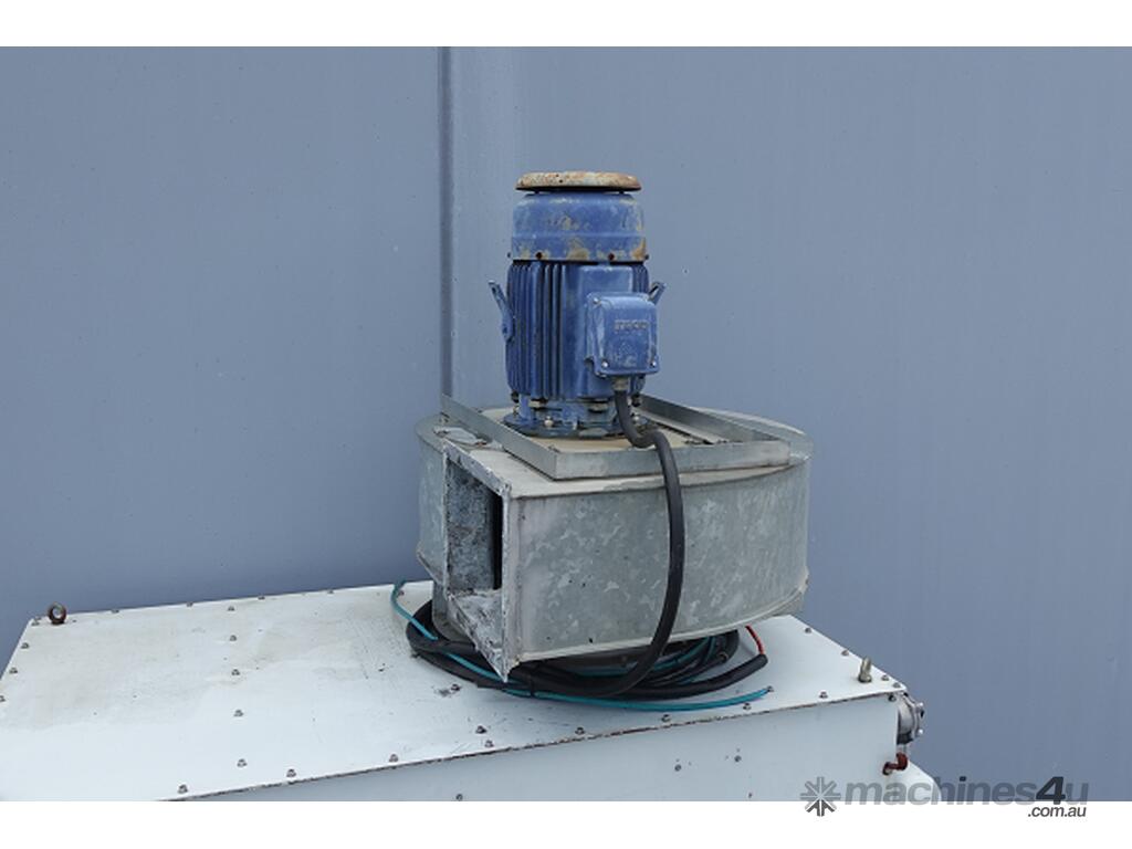 Dust collector has a top mounted centrifugal fan (18.5 kw, 2940 Rpm, 415 volt).